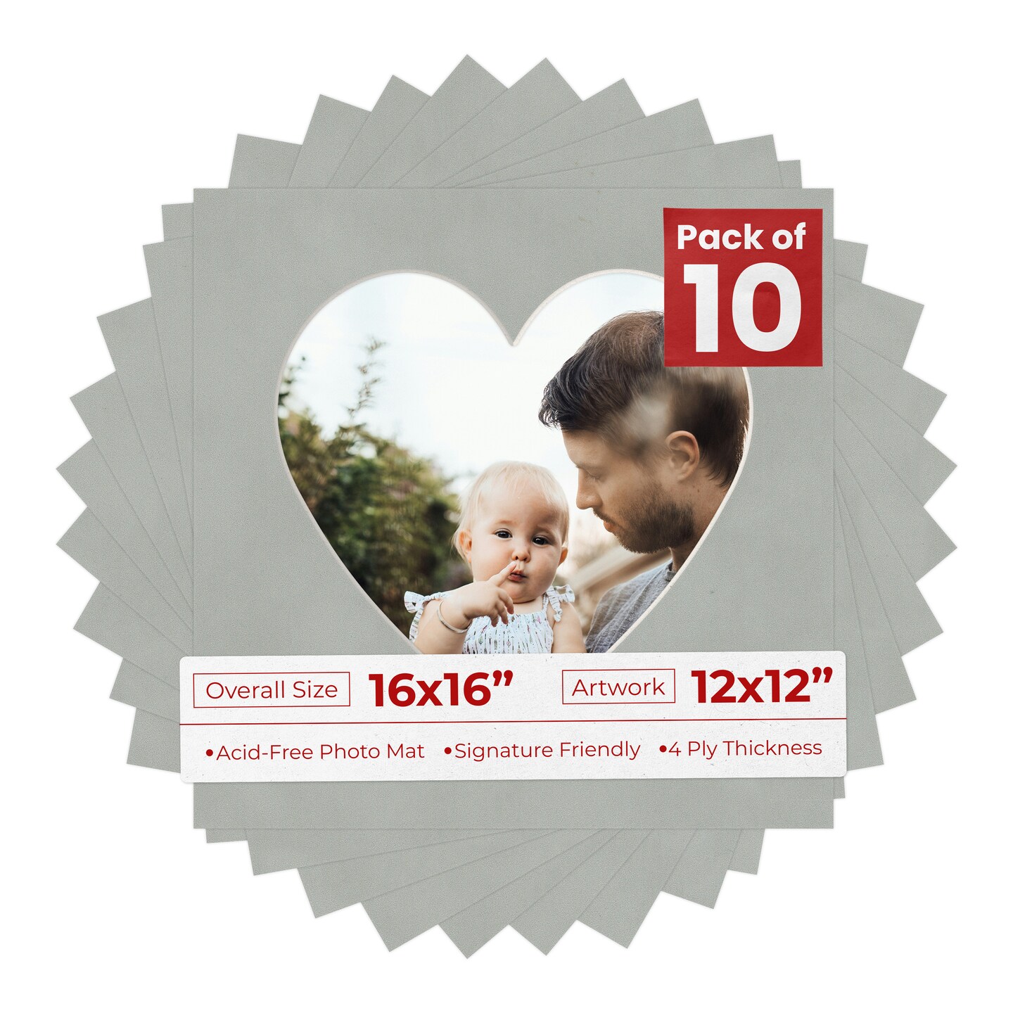 Light Grey Suede Mat Board for 16x16 Frames - Heart Opening for 12x12 Photos