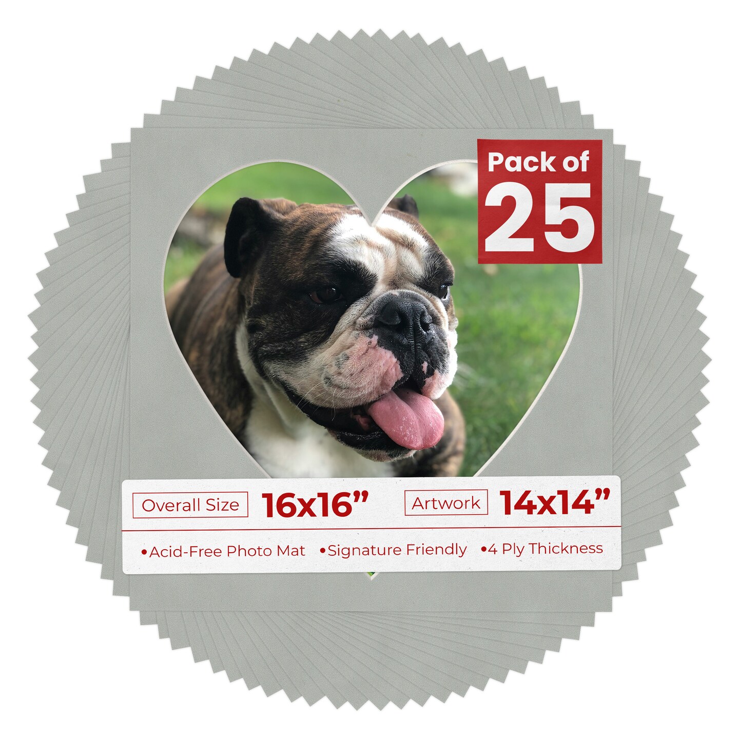 Light Grey Suede Mat Board for 16x16 Frames - Heart Opening for 14x14 Photos