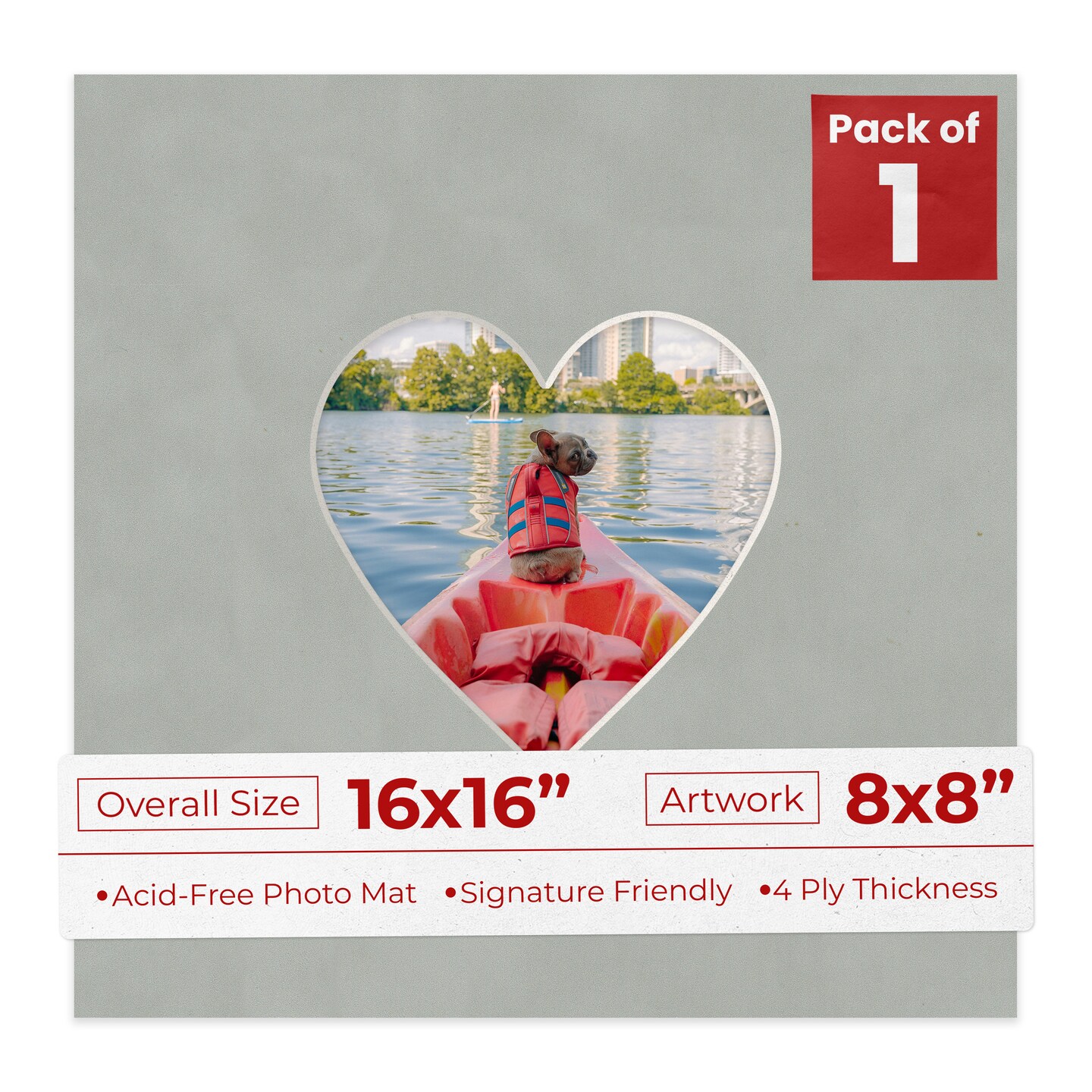 Light Grey Suede Mat Board for 16x16 Frames - Heart Opening for 8x8 Photos