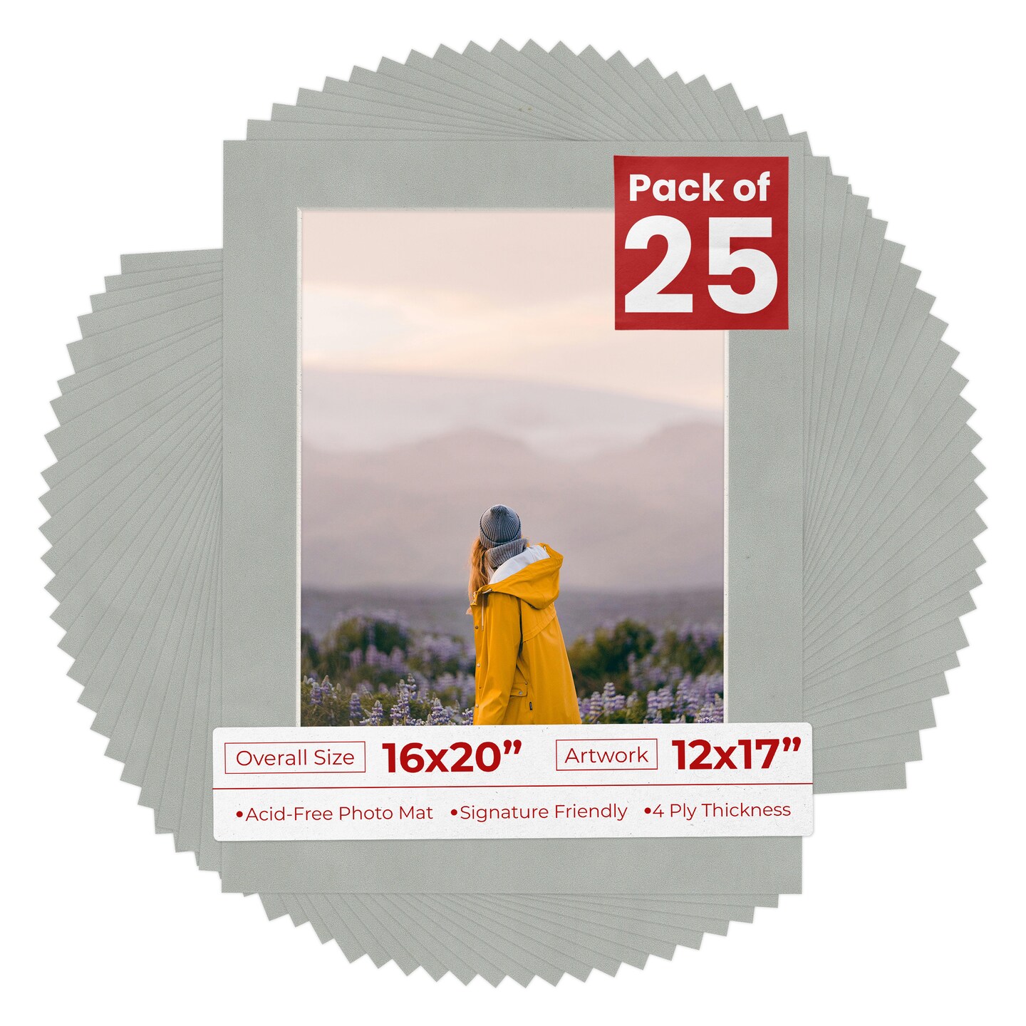 Light Grey Suede Mat Board for 16x20 Frames - Fits 12x17 Photos