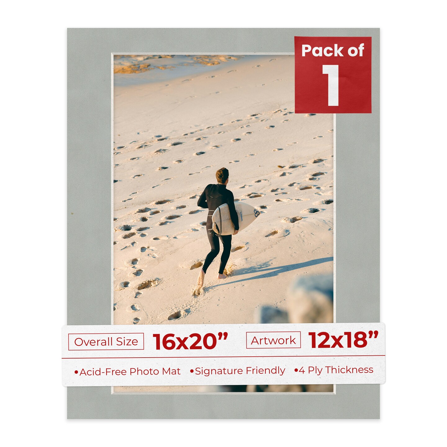 Light Grey Suede Mat Board for 16x20 Frames - Fits 12x18 Photos