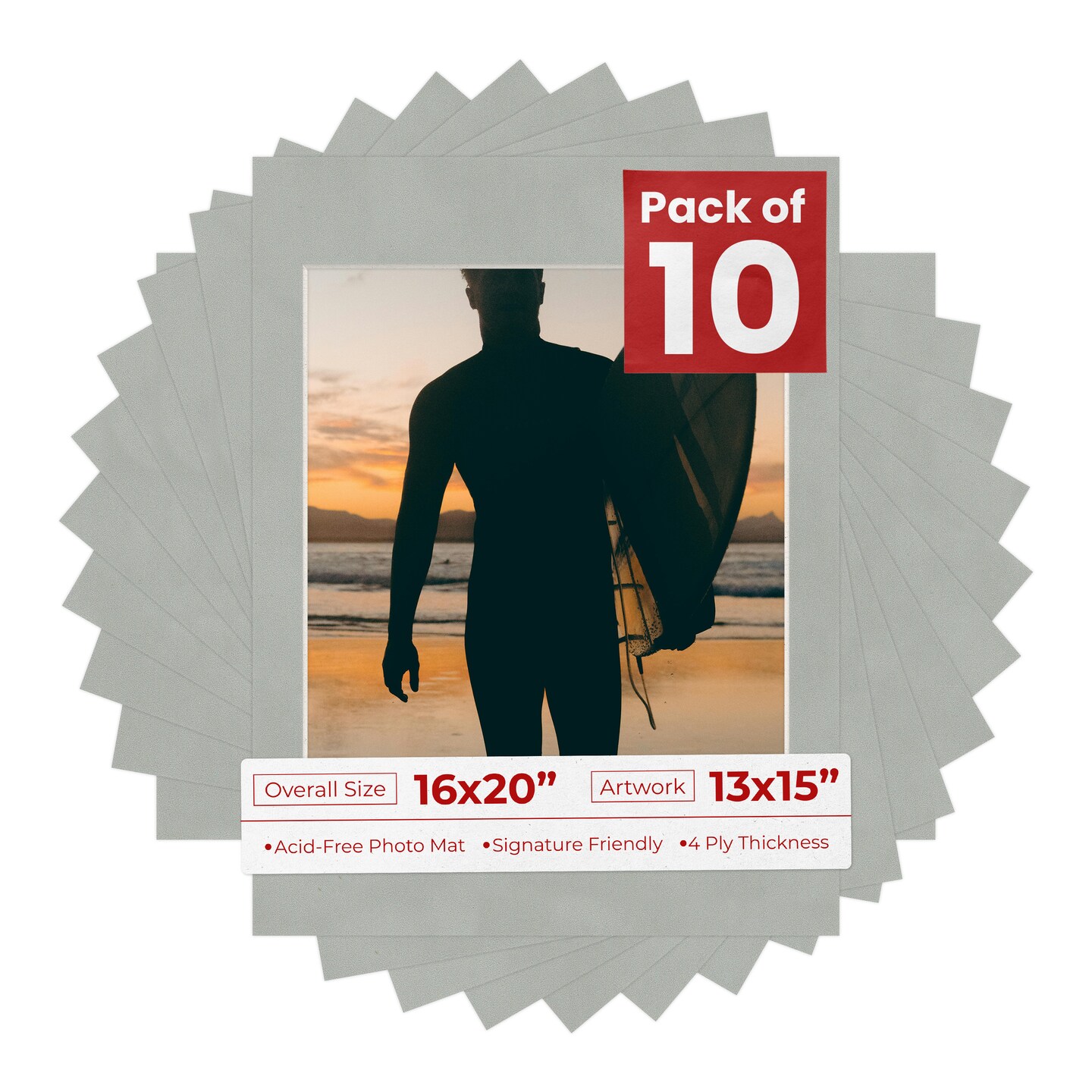 Light Grey Suede Mat Board for 16x20 Frames - Fits 13x15 Photos