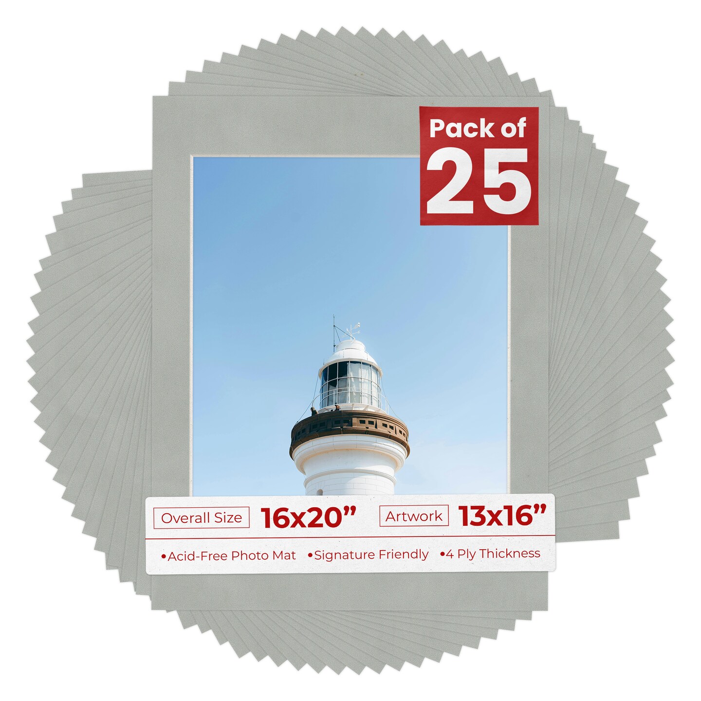 Light Grey Suede Mat Board for 16x20 Frames - Fits 13x16 Photos