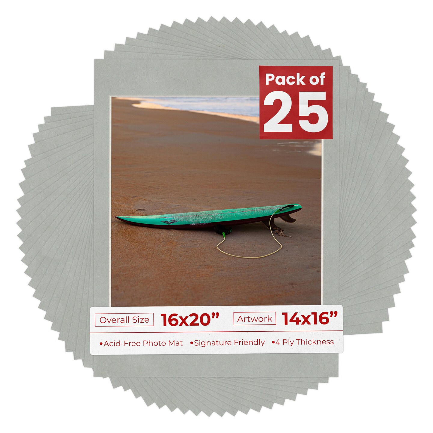 Light Grey Suede Mat Board for 16x20 Frames - Fits 14x16 Photos