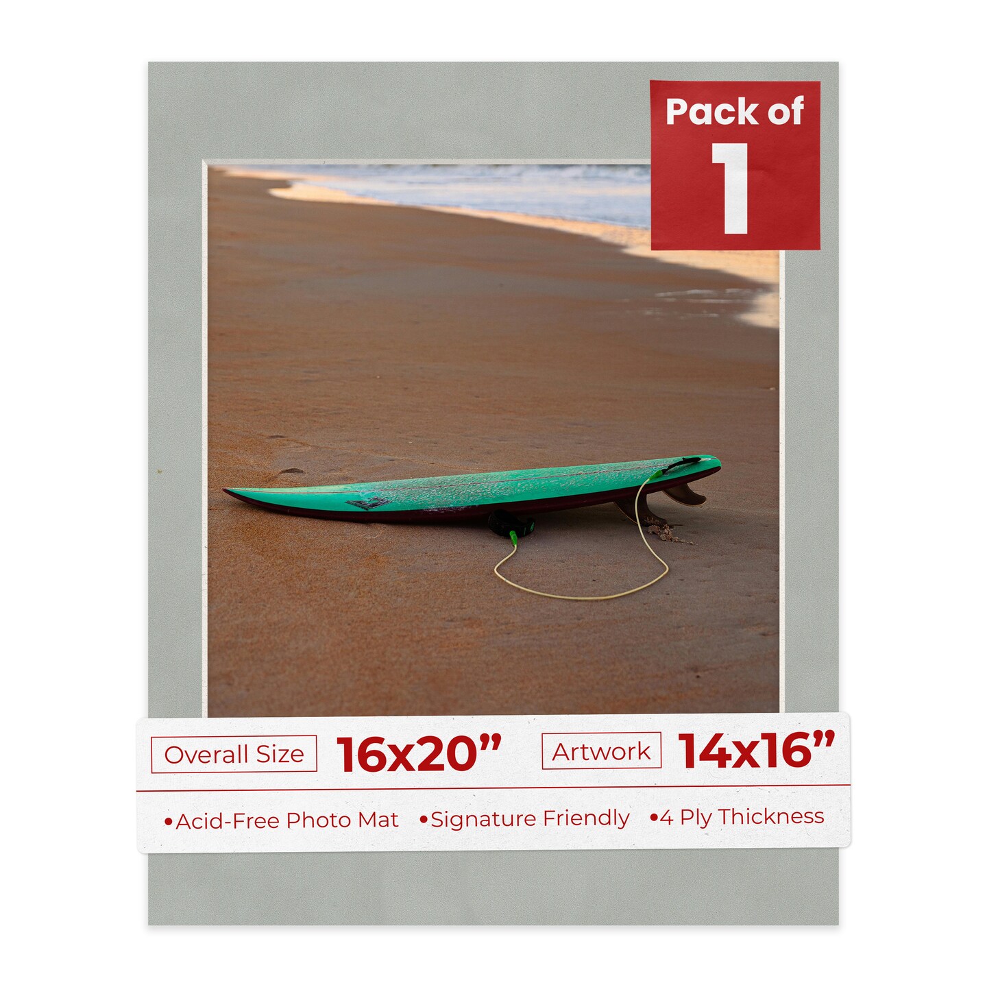 Light Grey Suede Mat Board for 16x20 Frames - Fits 14x16 Photos