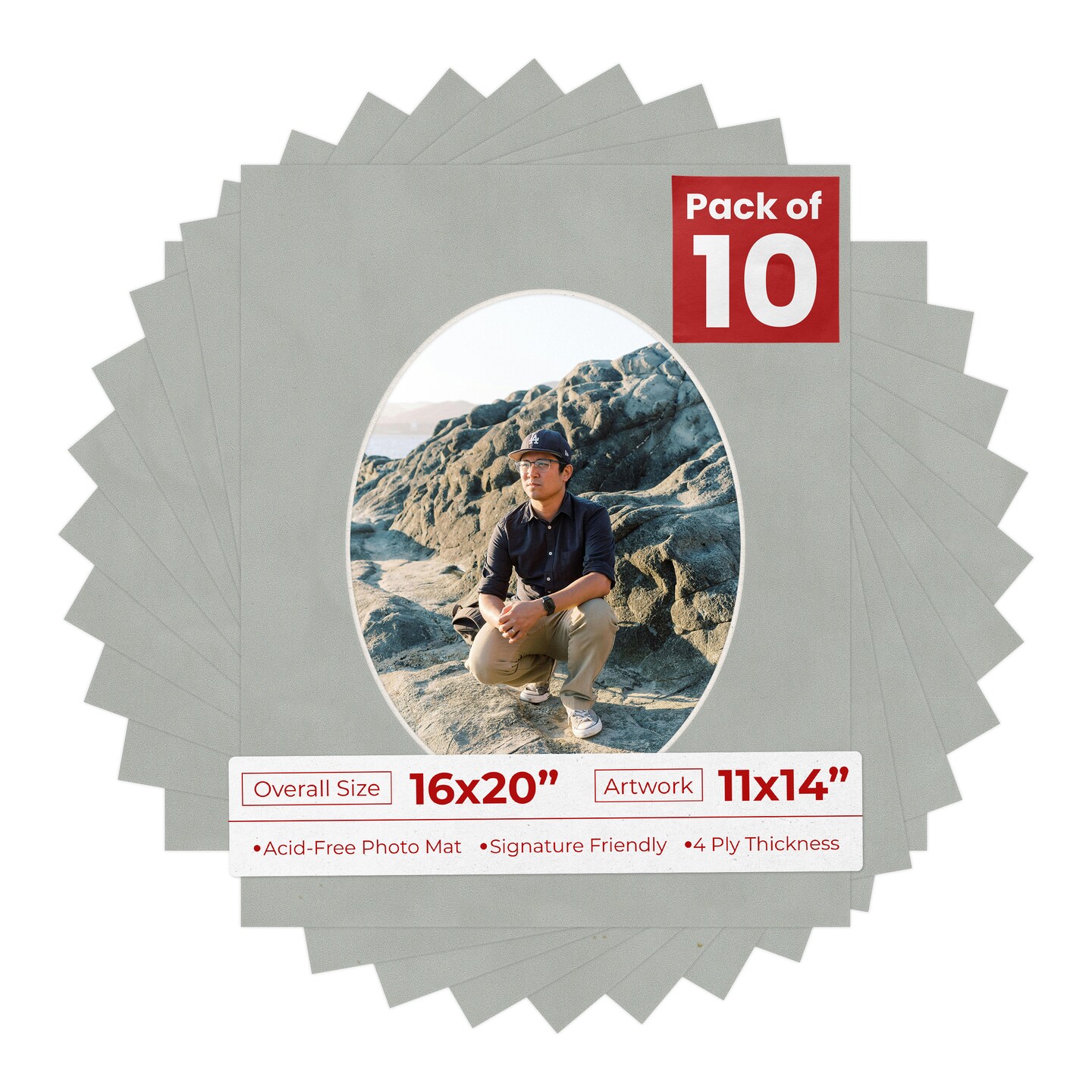 Light Grey Suede Mat Board for 16x20 Frames - Oval Opening for 11x14 Photos