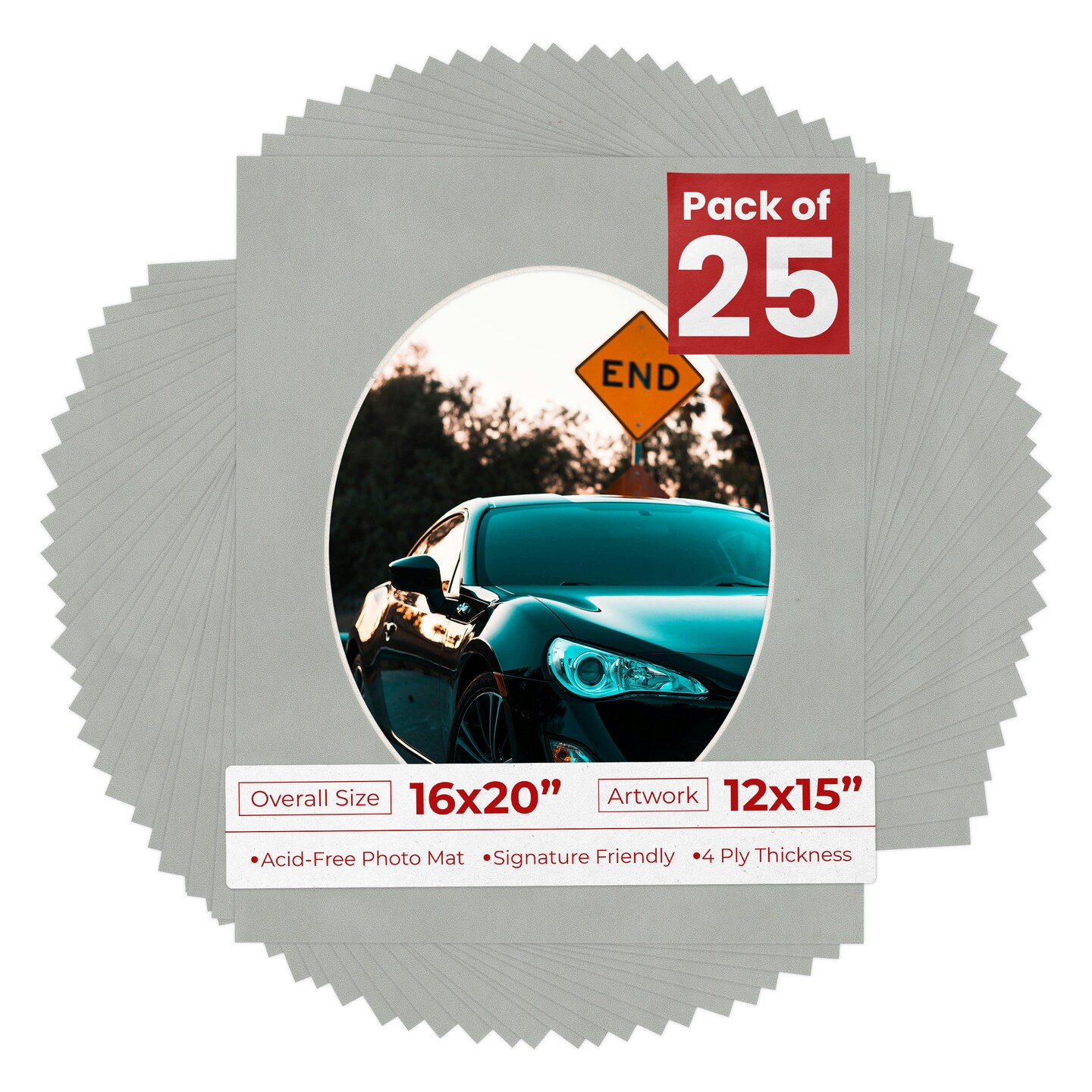 Light Grey Suede Mat Board for 16x20 Frames - Oval Opening for 12x15 Photos