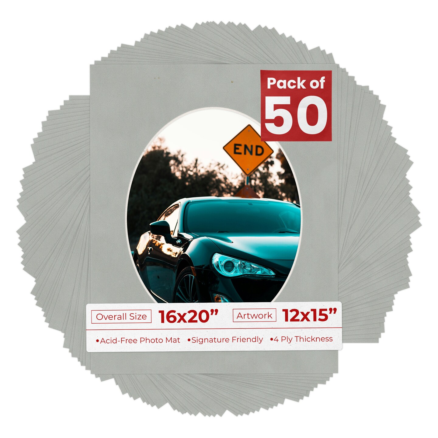 Light Grey Suede Mat Board for 16x20 Frames - Oval Opening for 12x15 Photos
