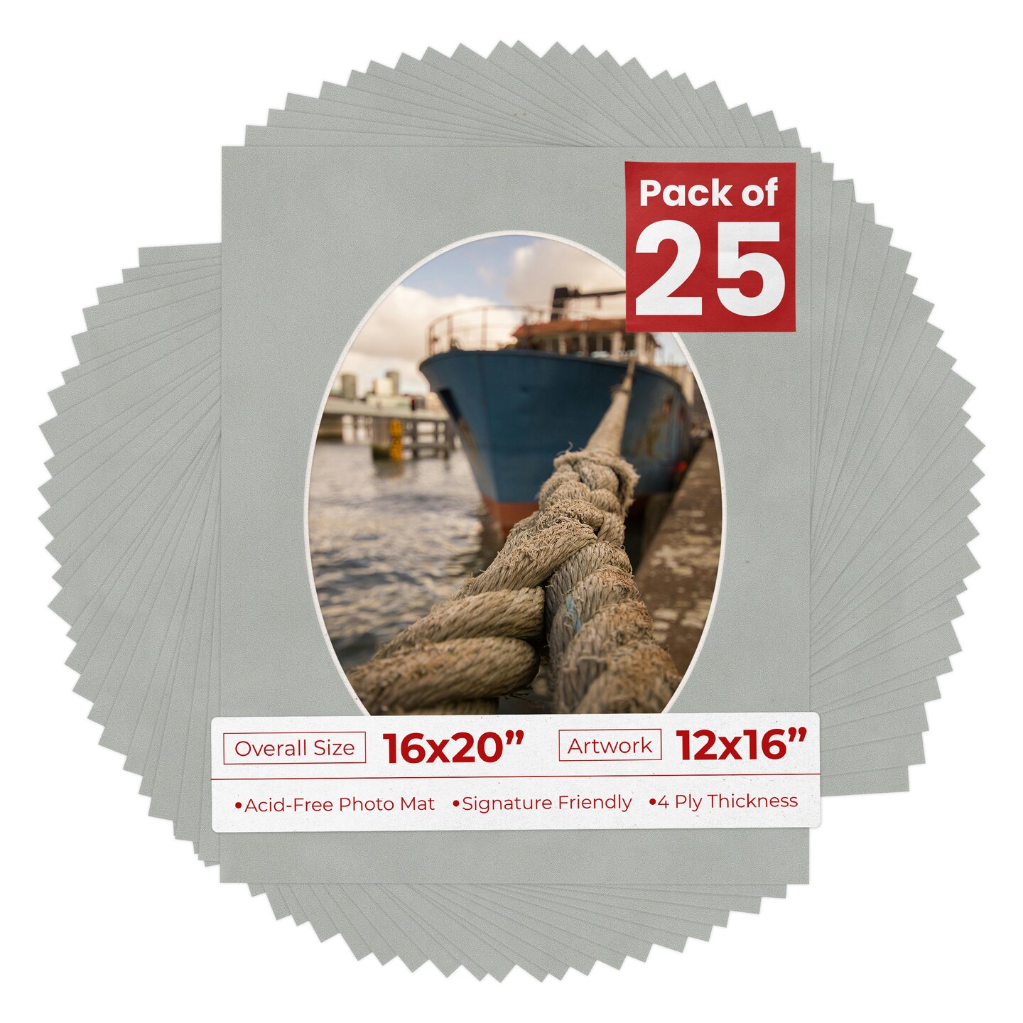 Light Grey Suede Mat Board for 16x20 Frames - Oval Opening for 12x16 Photos