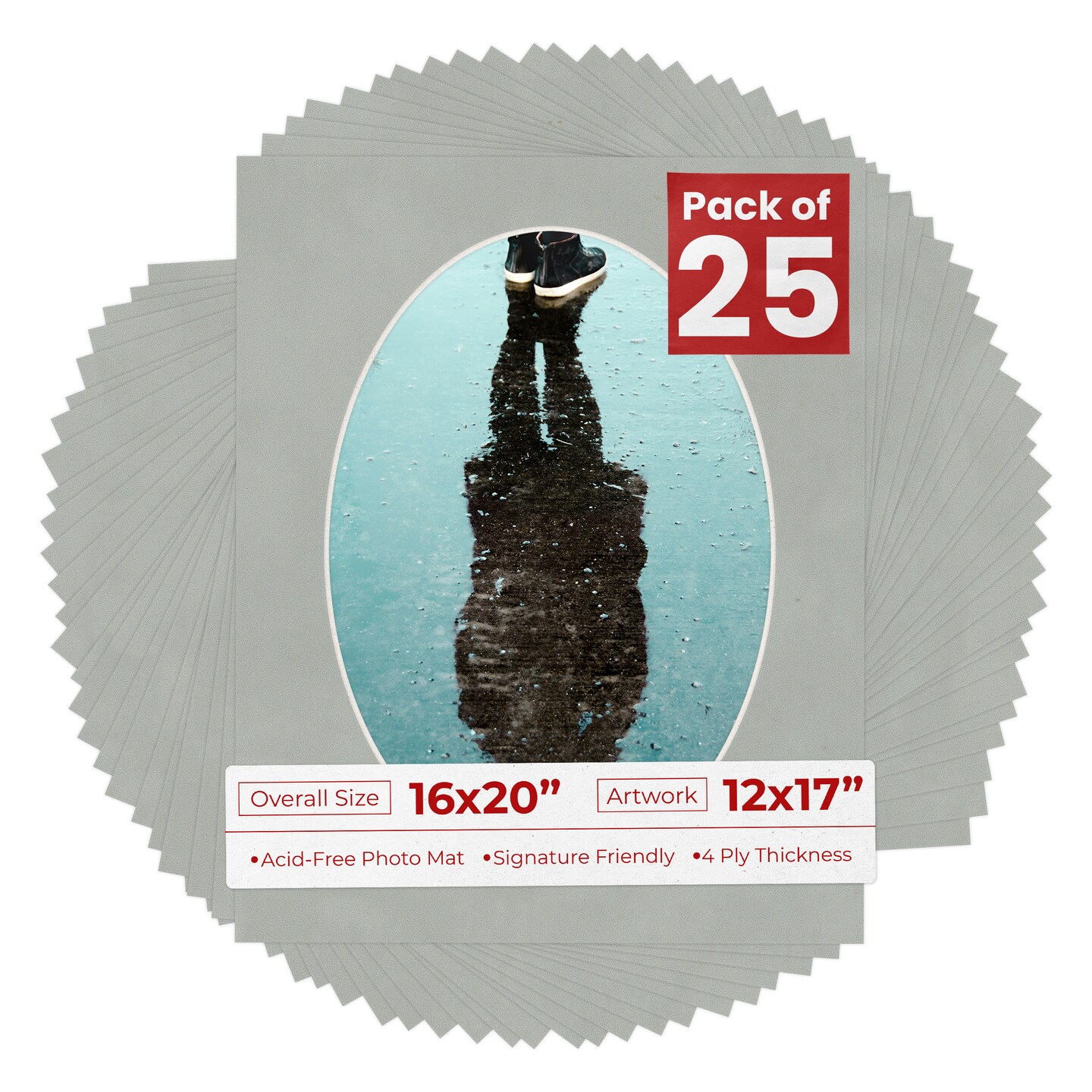Light Grey Suede Mat Board for 16x20 Frames - Oval Opening for 12x17 Photos