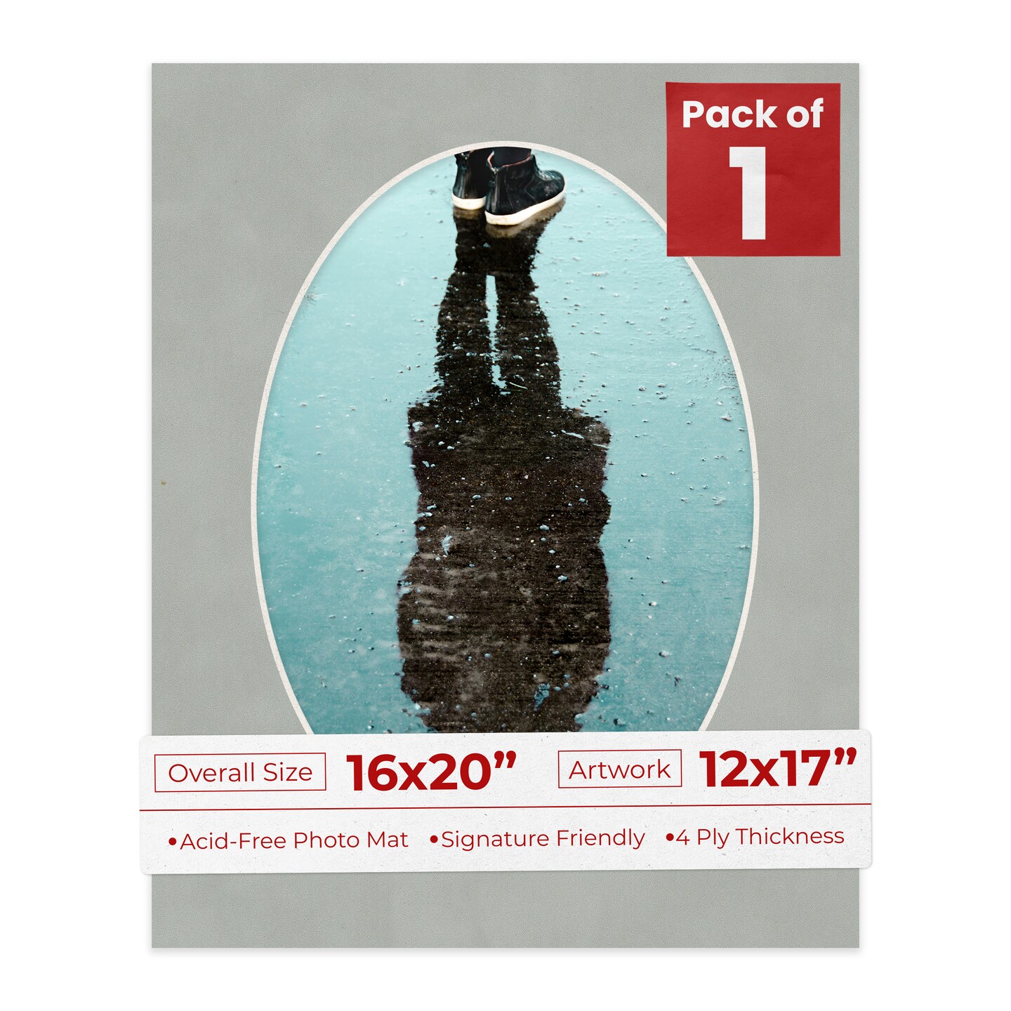 Light Grey Suede Mat Board for 16x20 Frames - Oval Opening for 12x17 Photos