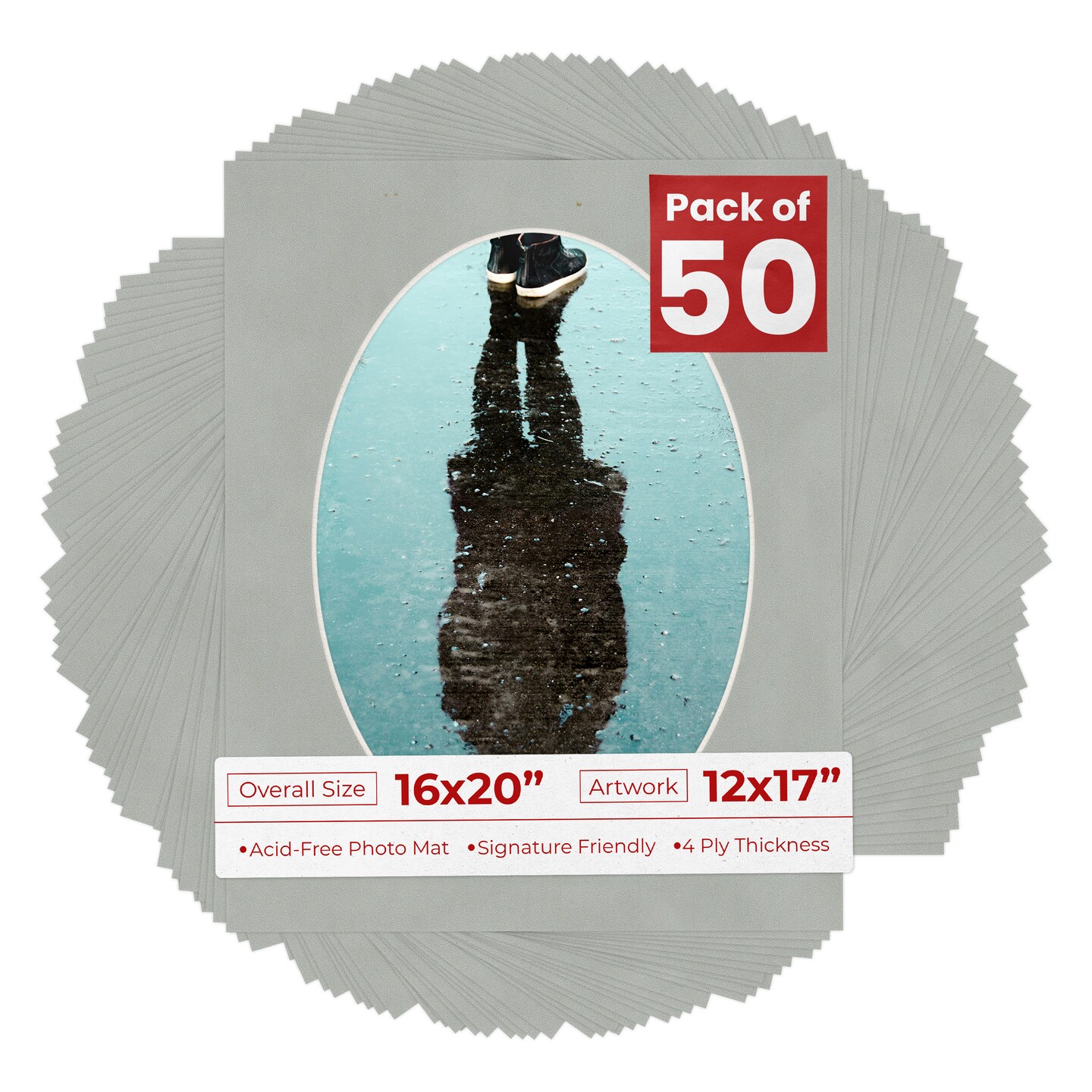 Light Grey Suede Mat Board for 16x20 Frames - Oval Opening for 12x17 Photos