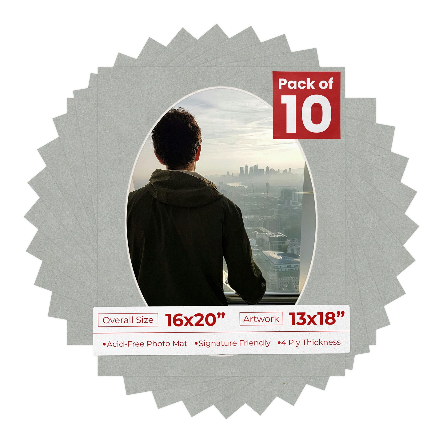 Light Grey Suede Mat Board for 16x20 Frames - Oval Opening for 13x18 Photos