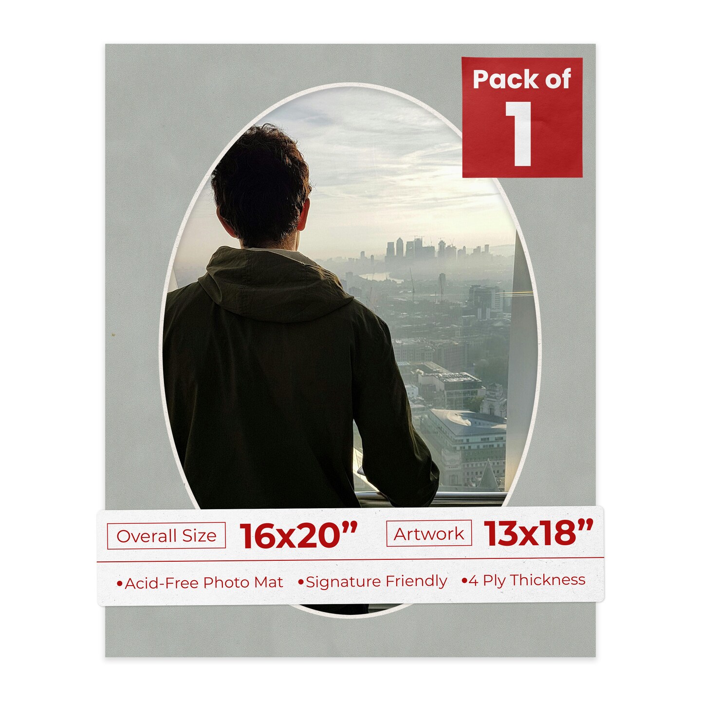 Light Grey Suede Mat Board for 16x20 Frames - Oval Opening for 13x18 Photos