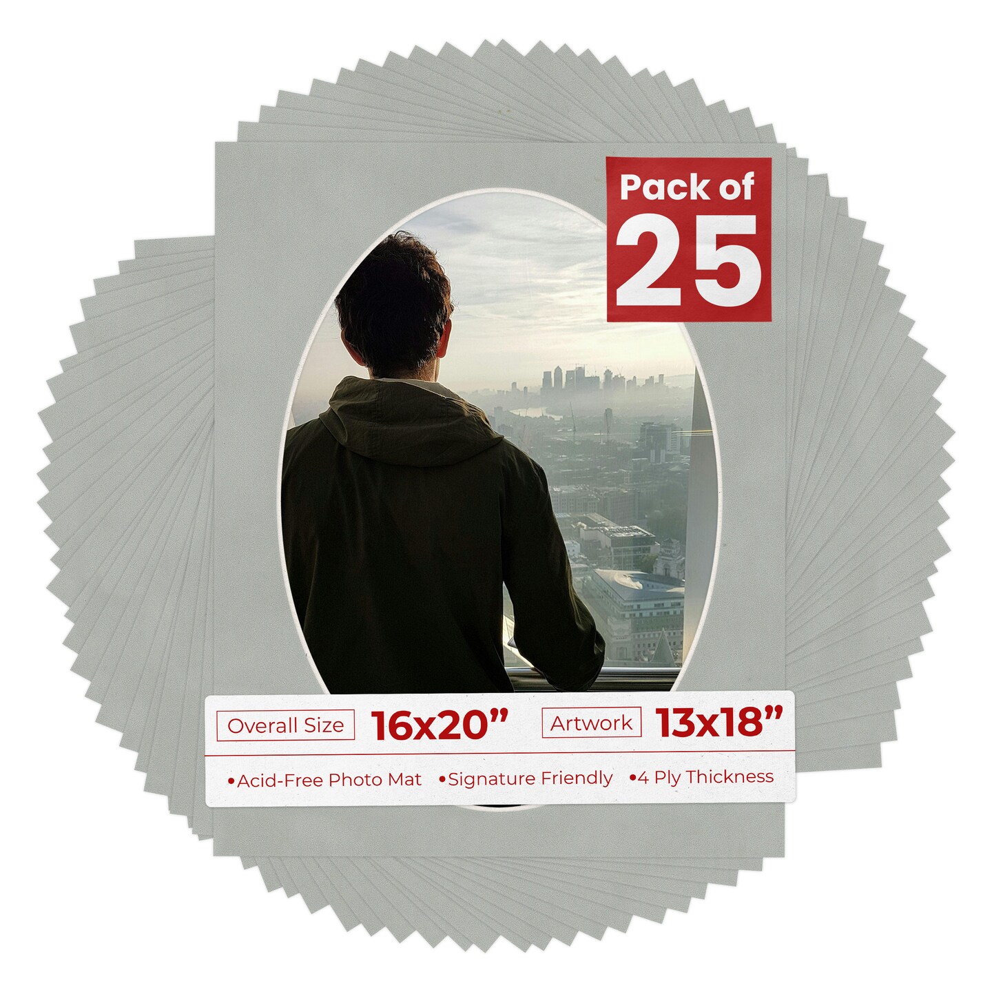 Light Grey Suede Mat Board for 16x20 Frames - Oval Opening for 13x18 Photos