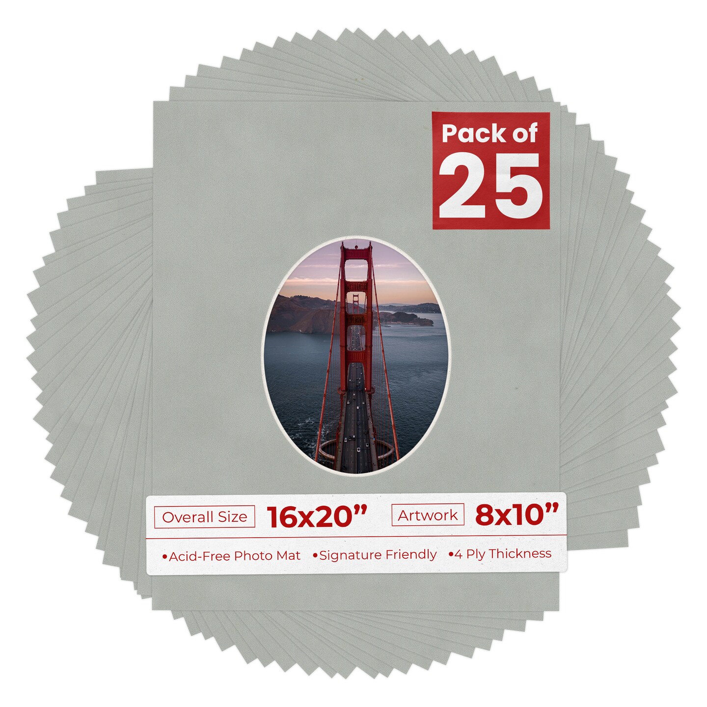 Light Grey Suede Mat Board for 16x20 Frames - Oval Opening for 8x10 Photos