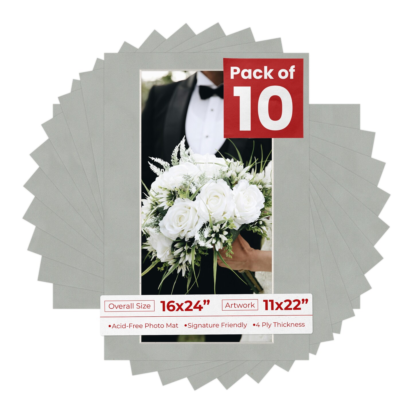 Light Grey Suede Mat Board for 16x24 Frames - Fits 11x22 Photos