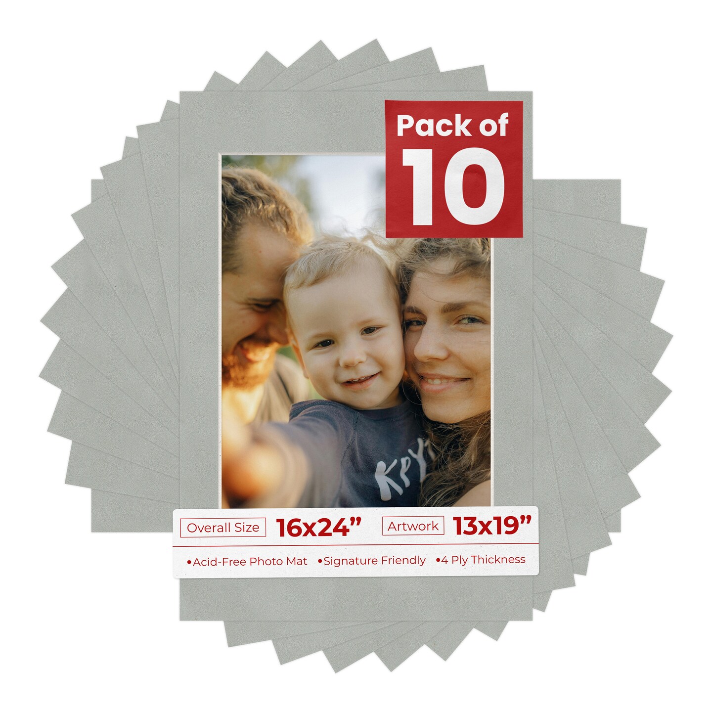Light Grey Suede Mat Board for 16x24 Frames - Fits 13x19 Photos