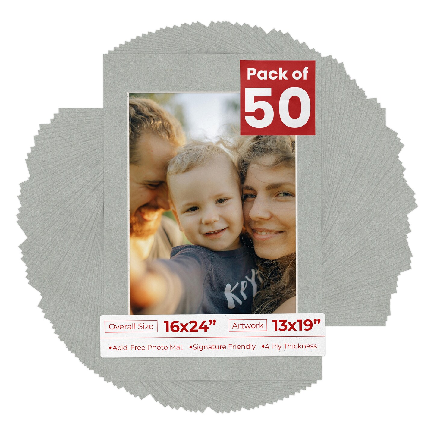 Light Grey Suede Mat Board for 16x24 Frames - Fits 13x19 Photos