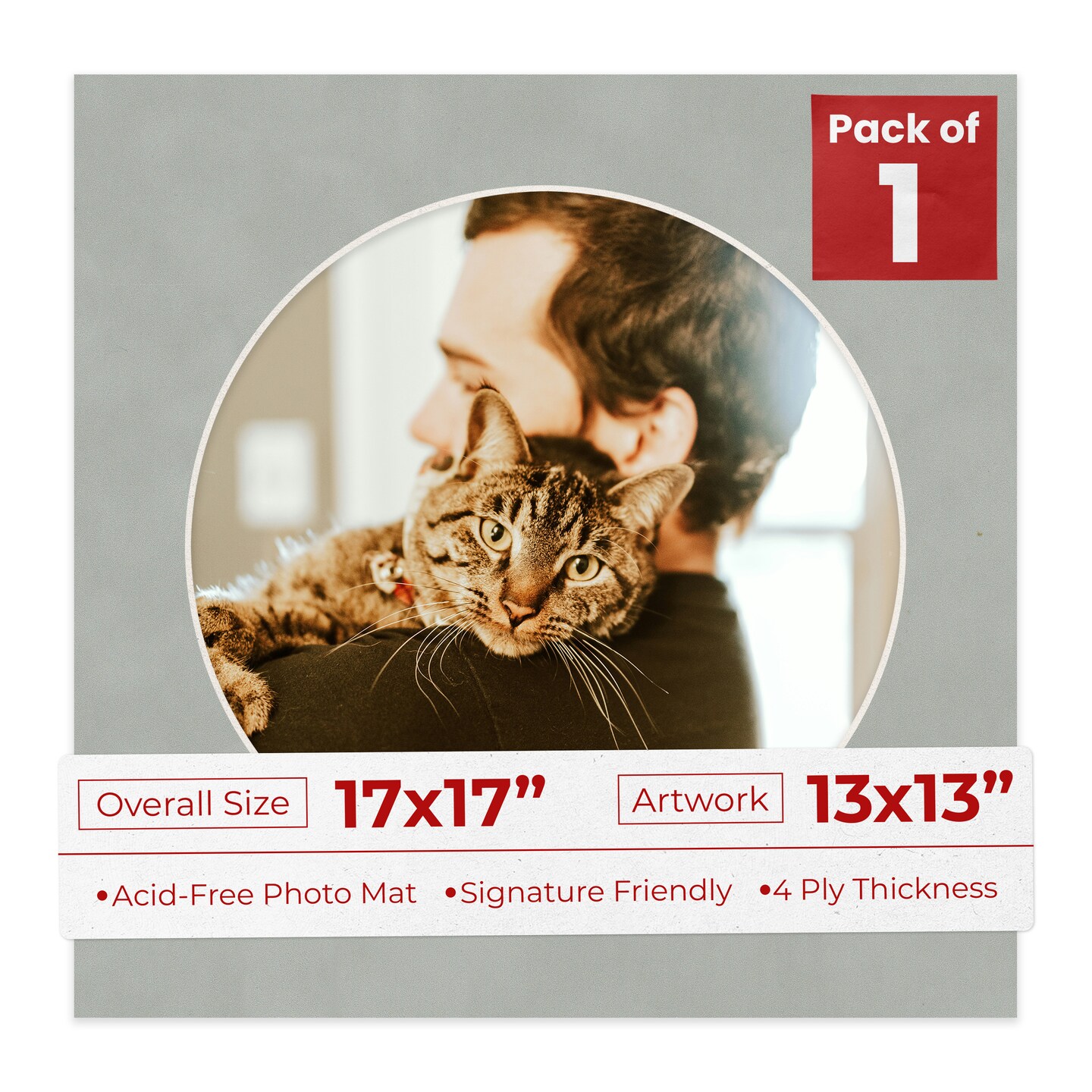 Light Grey Suede Mat Board for 17x17 Frames - Circle Opening for 13x13 Photos