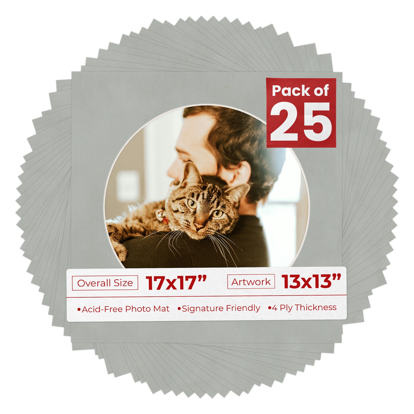 Light Grey Suede Mat Board for 17x17 Frames - Circle Opening for 13x13 Photos