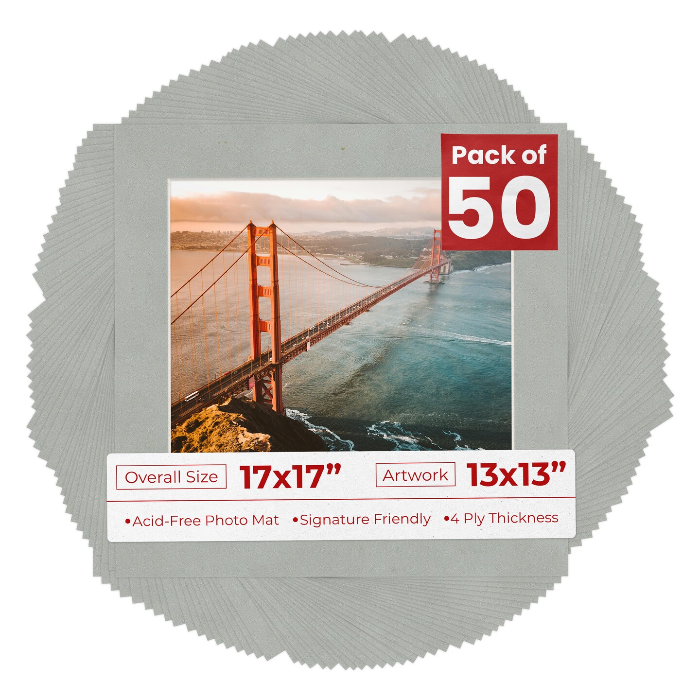 Light Grey Suede Mat Board for 17x17 Frames - Fits 13x13 Photos