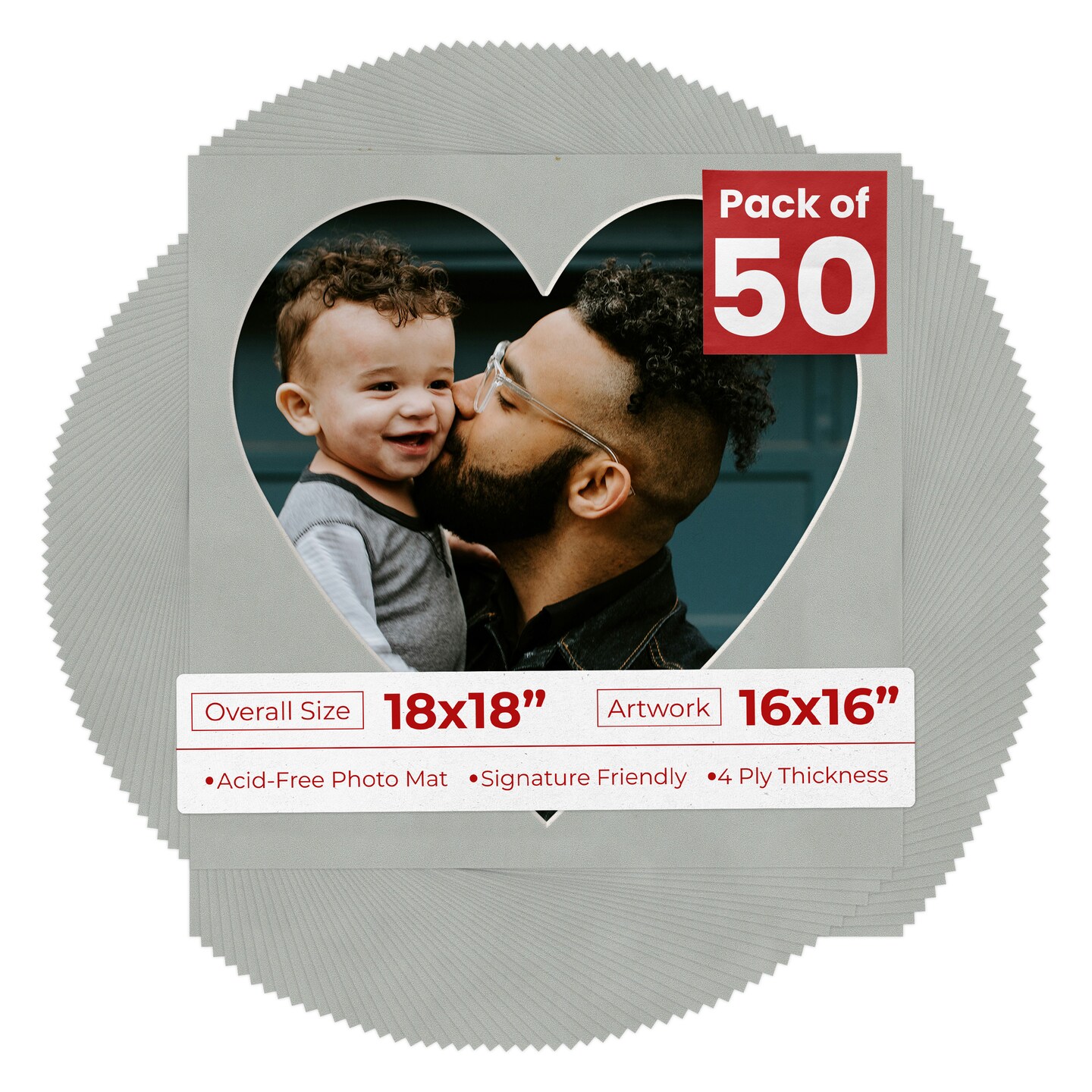 Light Grey Suede Mat Board for 18x18 Frames - Heart Opening for 16x16 Photos