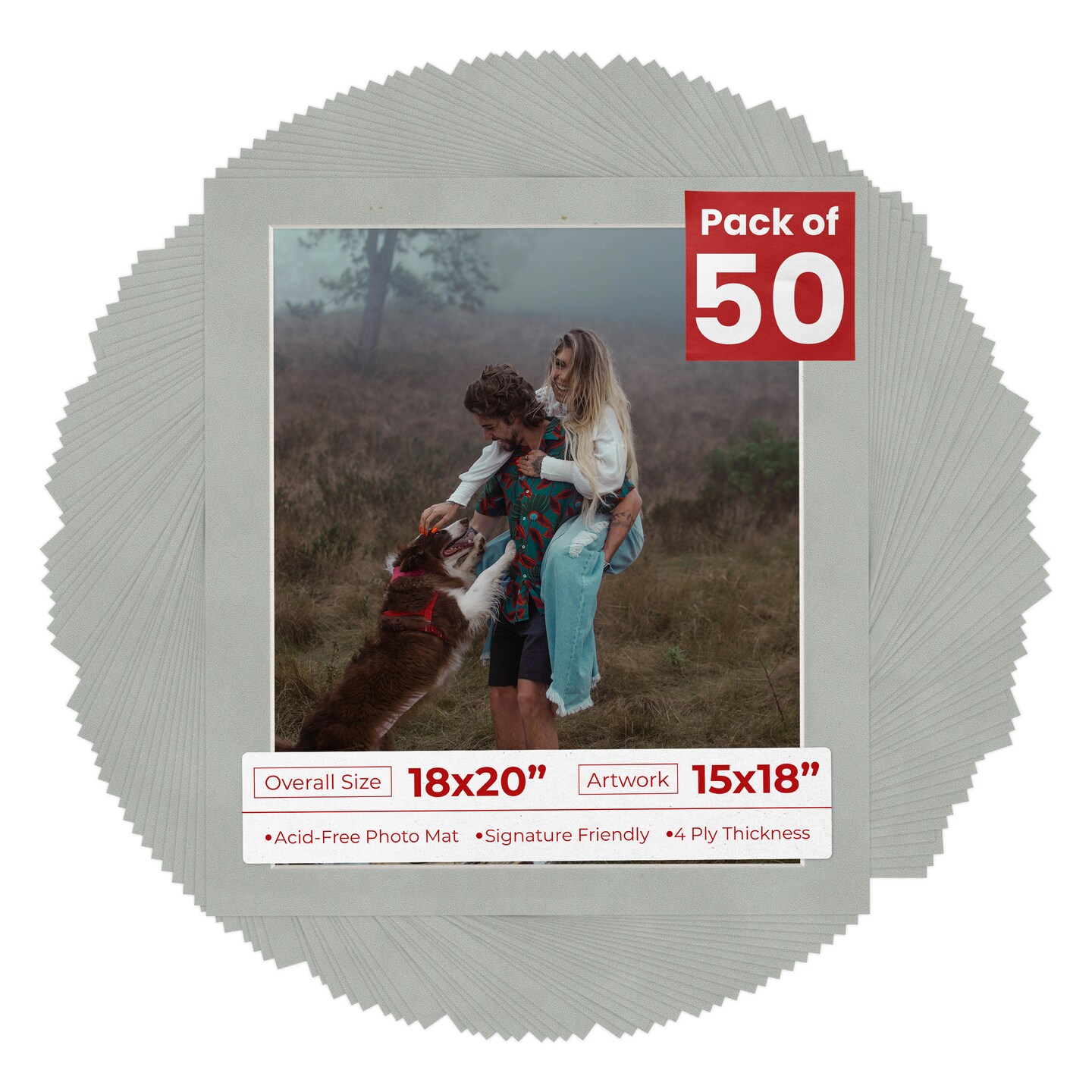 Light Grey Suede Mat Board for 18x20 Frames - Fits 15x18 Photos