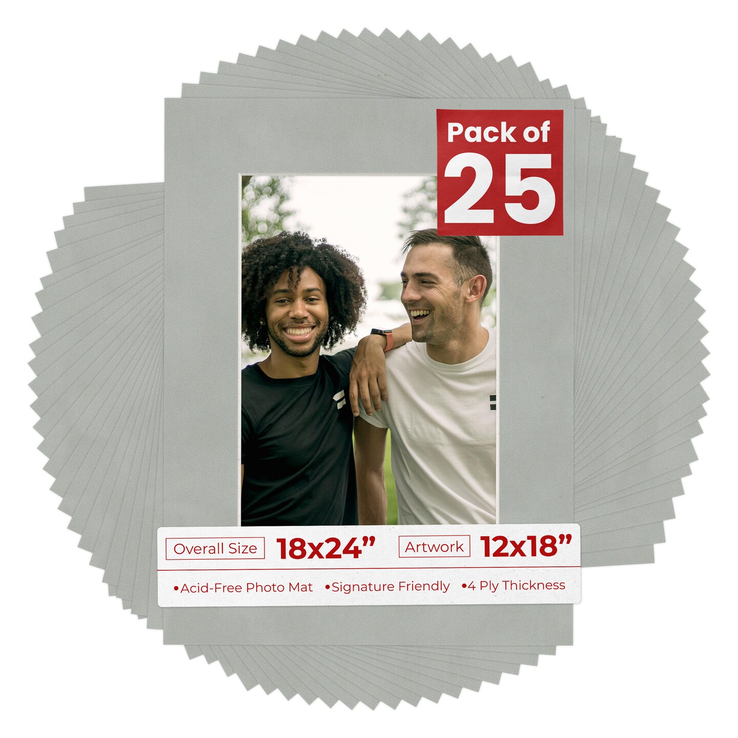 Light Grey Suede Mat Board for 18x24 Frames - Fits 12x18 Photos