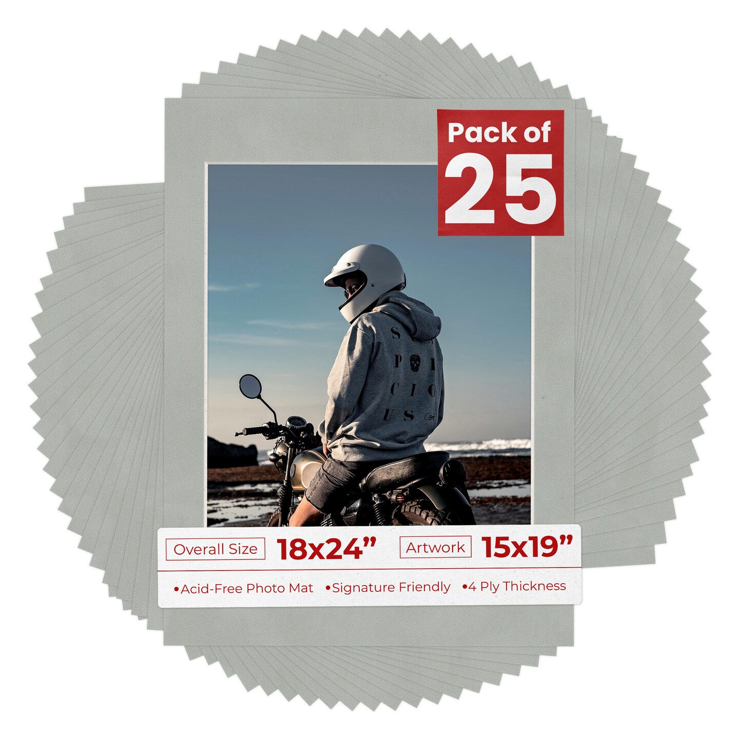 Light Grey Suede Mat Board for 18x24 Frames - Fits 15x19 Photos
