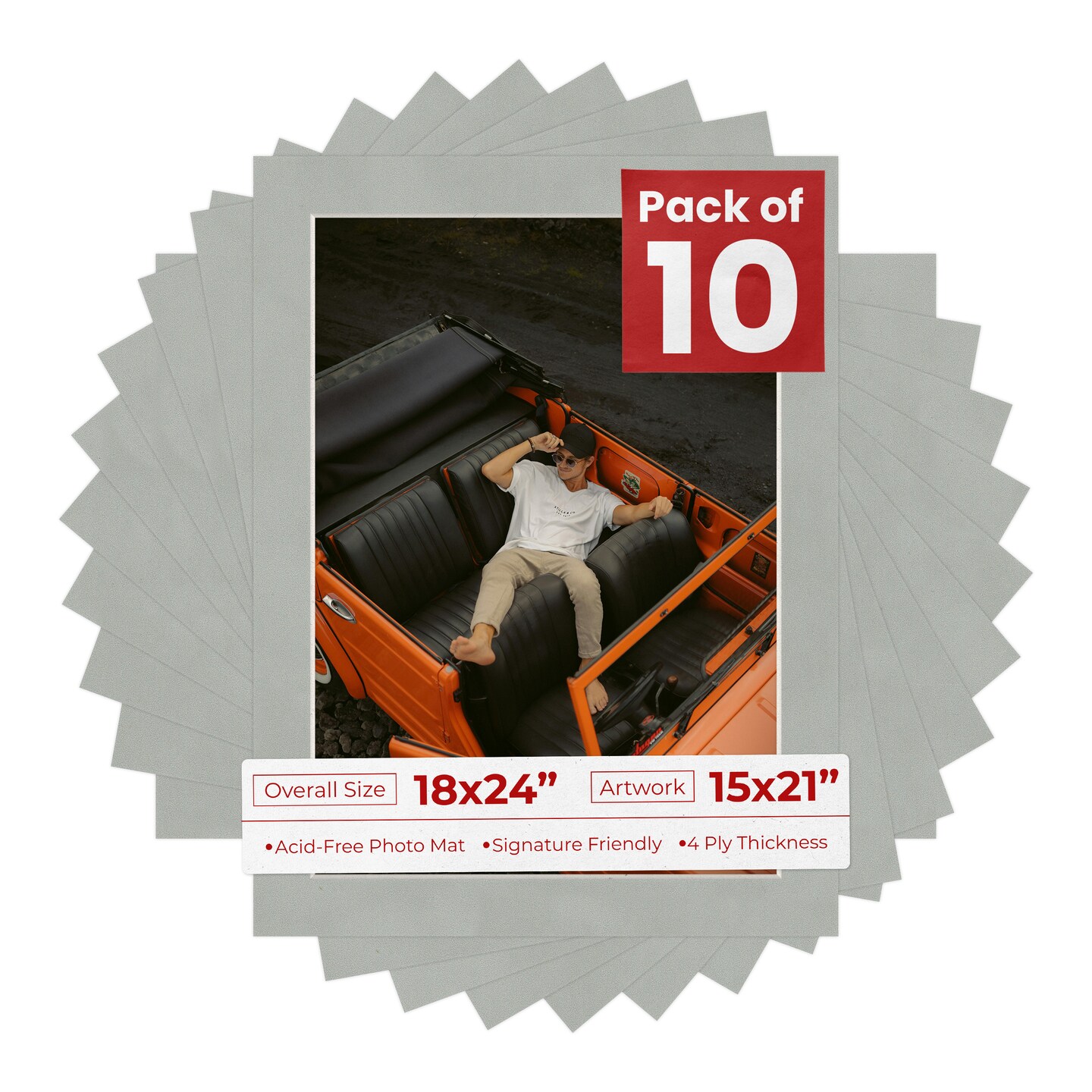 Light Grey Suede Mat Board for 18x24 Frames - Fits 15x21 Photos