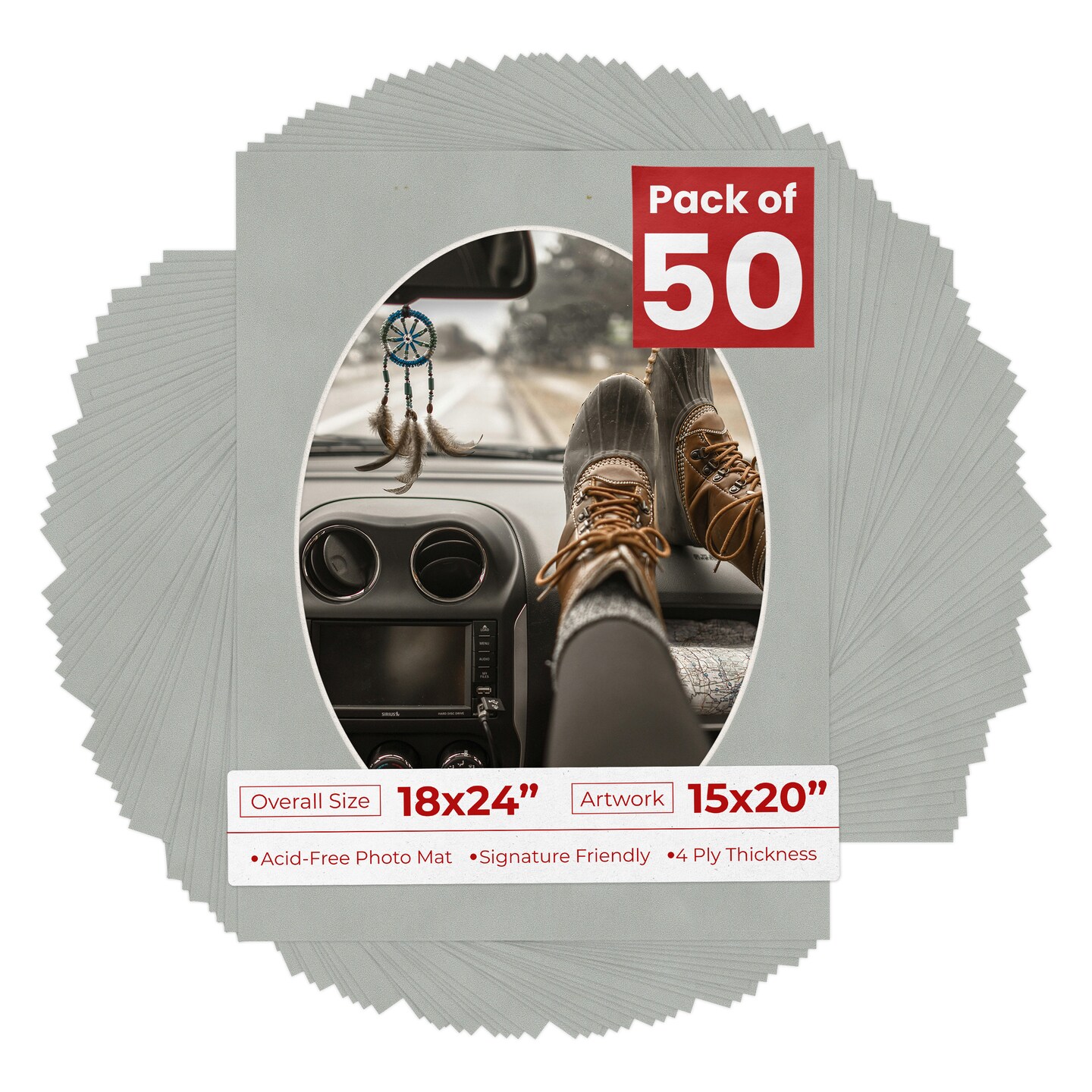 Light Grey Suede Mat Board for 18x24 Frames - Oval Opening for 15x20 Photos