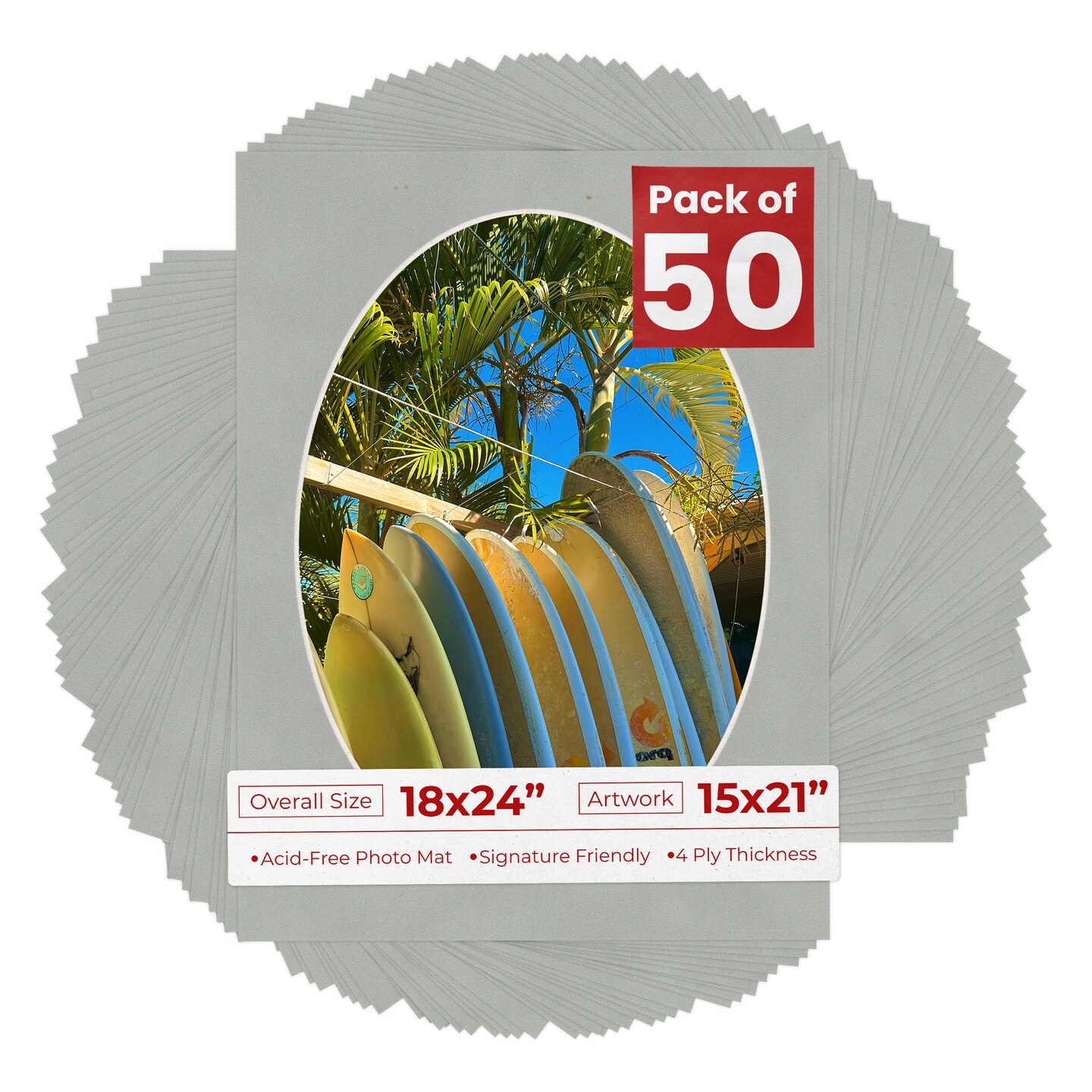 Light Grey Suede Mat Board for 18x24 Frames - Oval Opening for 15x21 Photos