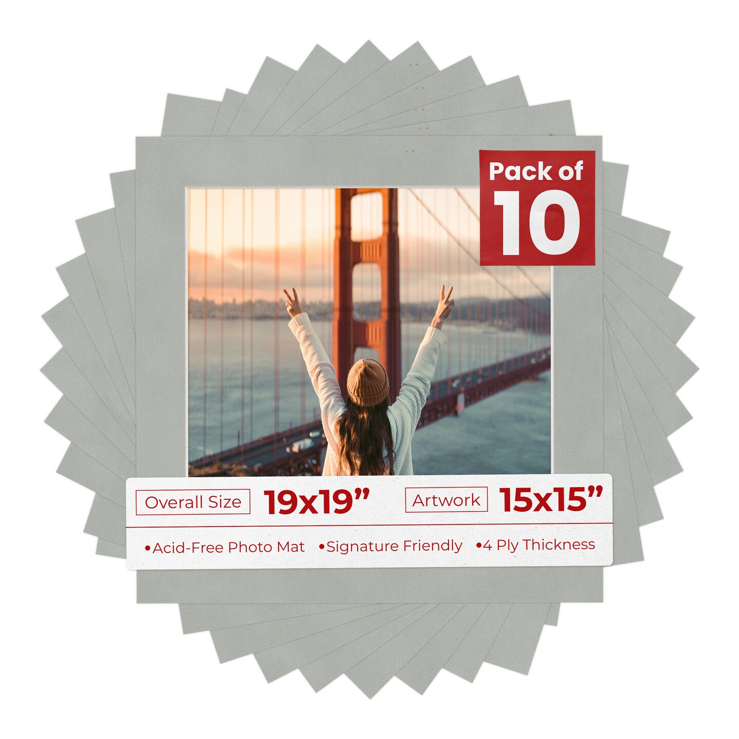 Light Grey Suede Mat Board for 19x19 Frames - Fits 15x15 Photos