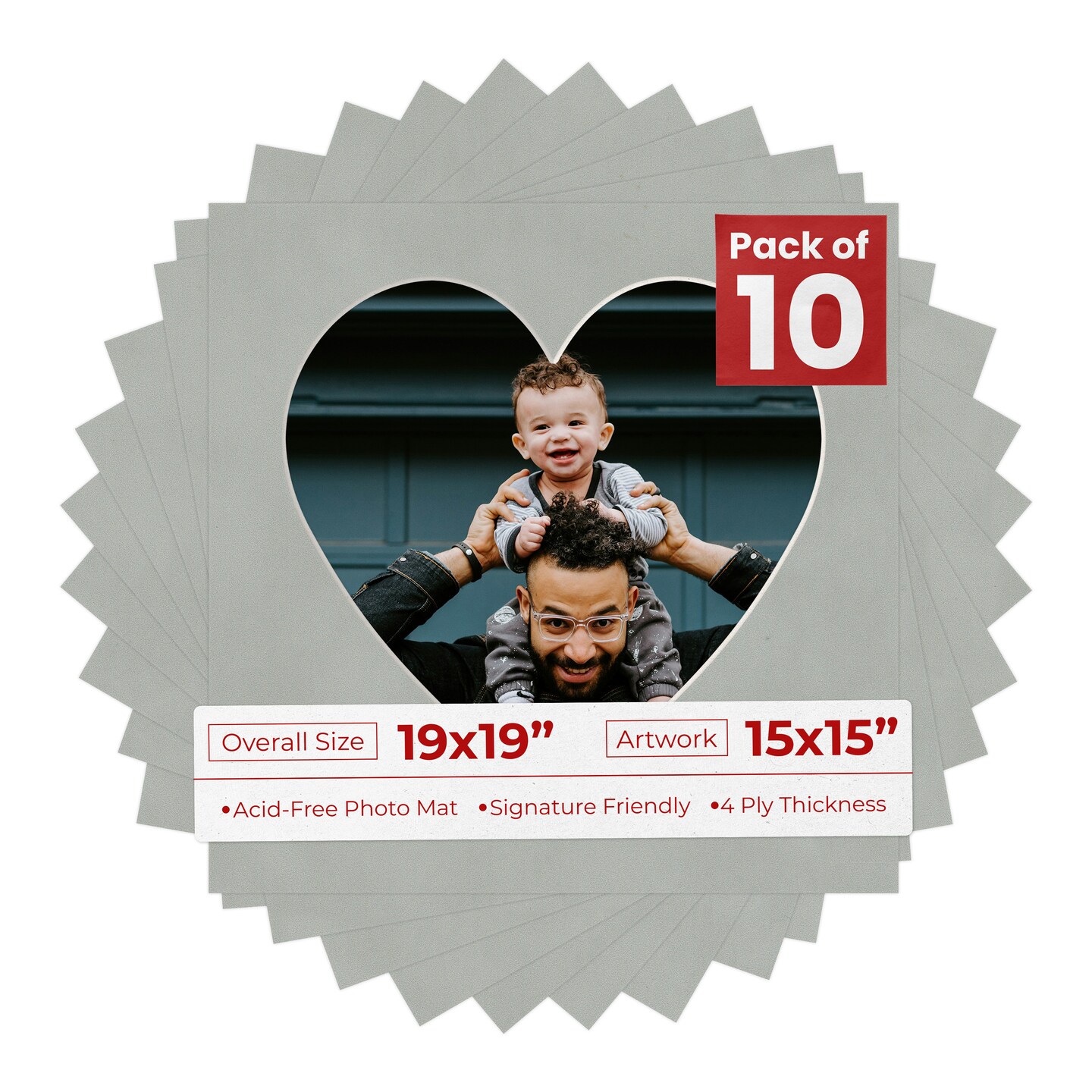 Light Grey Suede Mat Board for 19x19 Frames - Heart Opening for 15x15 Photos