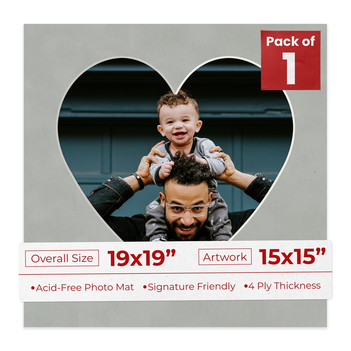Light Grey Suede Mat Board for 19x19 Frames - Heart Opening for 15x15 Photos