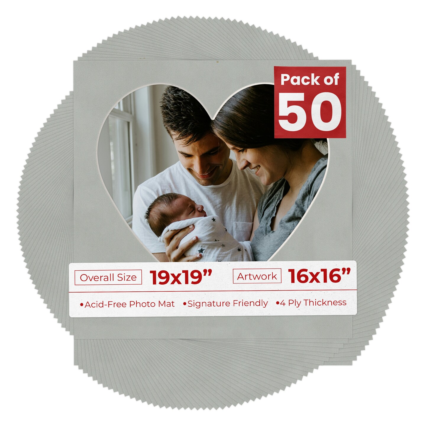 Light Grey Suede Mat Board for 19x19 Frames - Heart Opening for 16x16 Photos