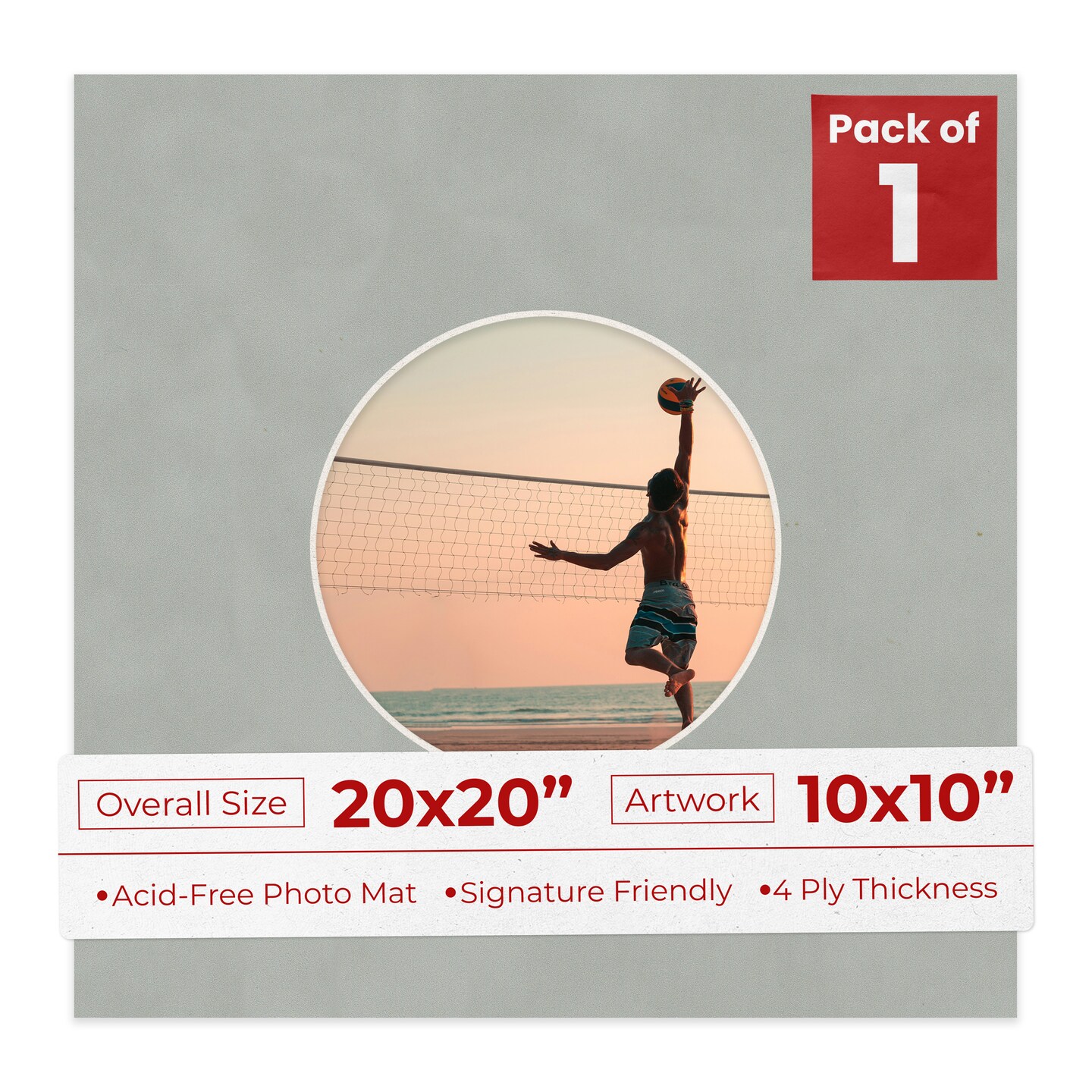 Light Grey Suede Mat Board for 20x20 Frames - Circle Opening for 10x10 Photos