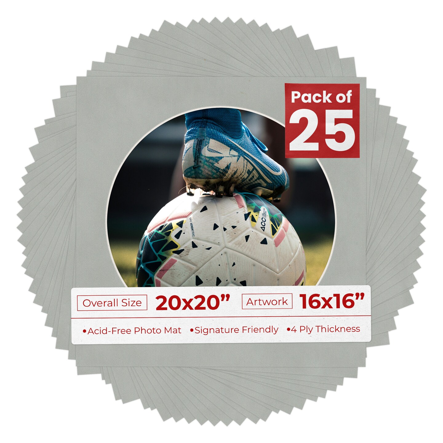 Light Grey Suede Mat Board for 20x20 Frames - Circle Opening for 16x16 Photos