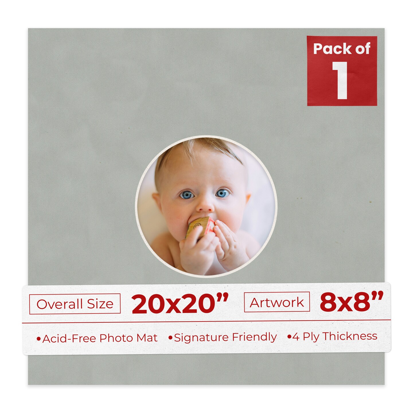 Light Grey Suede Mat Board for 20x20 Frames - Circle Opening for 8x8 Photos