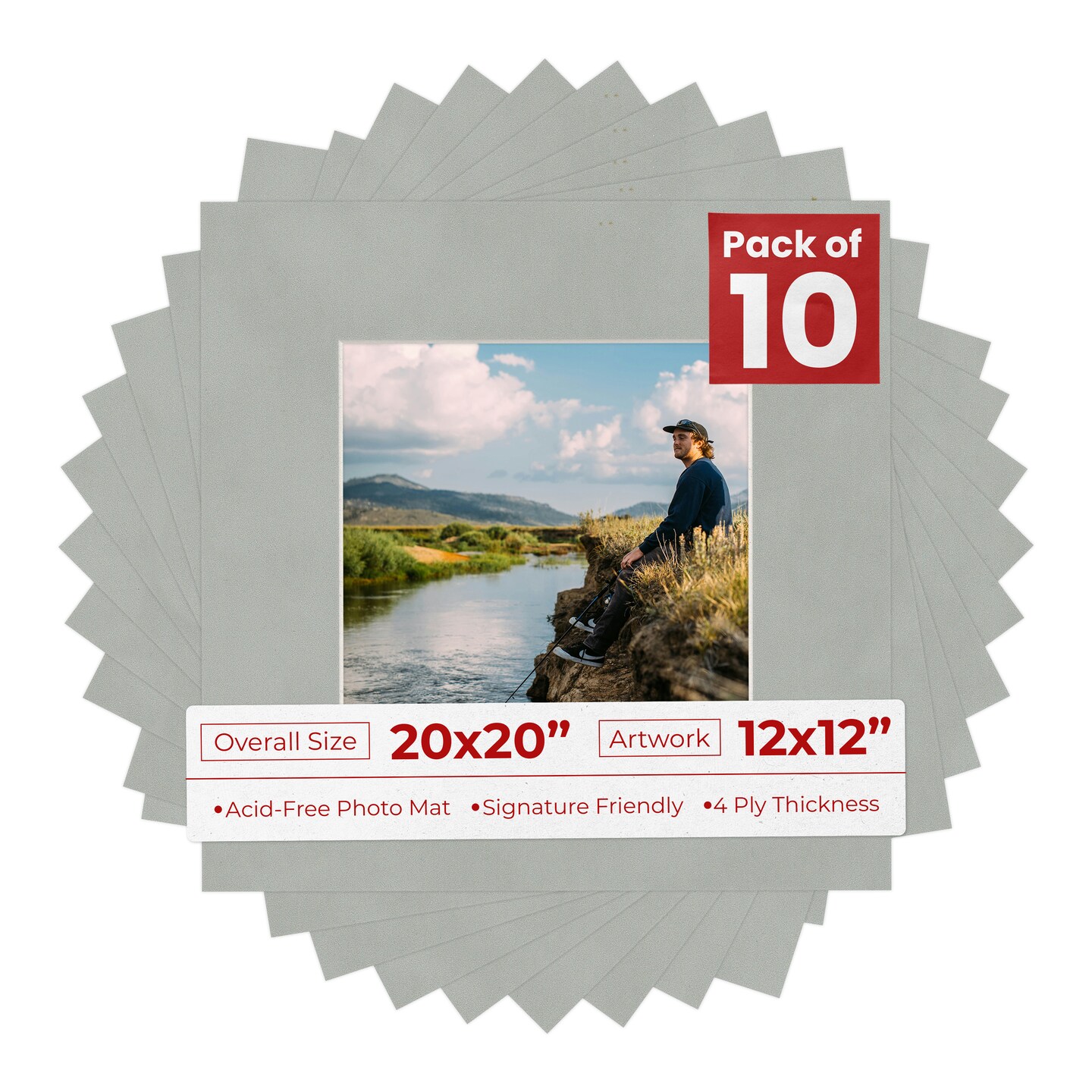Light Grey Suede Mat Board for 20x20 Frames - Fits 12x12 Photos