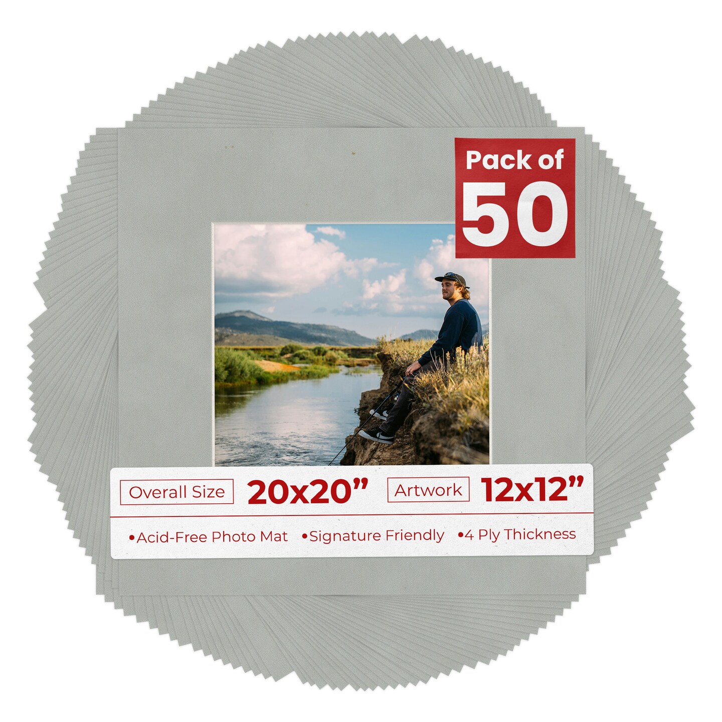 Light Grey Suede Mat Board for 20x20 Frames - Fits 12x12 Photos