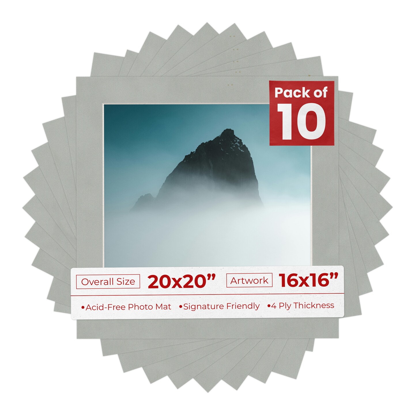 Light Grey Suede Mat Board for 20x20 Frames - Fits 16x16 Photos