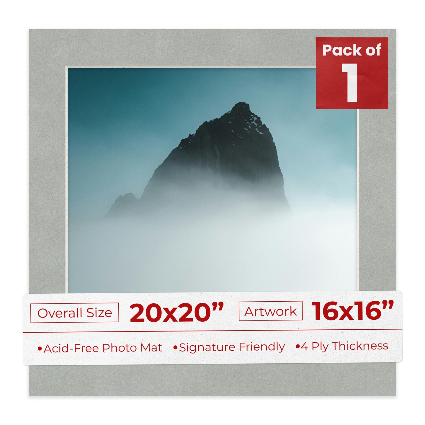 Light Grey Suede Mat Board for 20x20 Frames - Fits 16x16 Photos