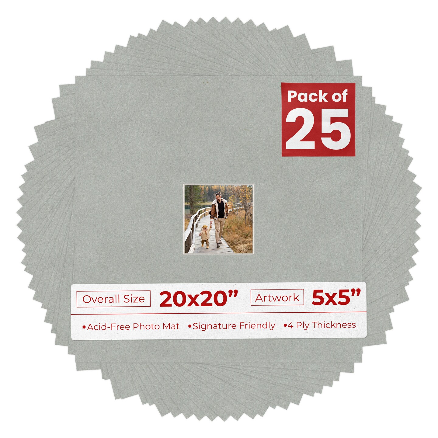 Light Grey Suede Mat Board for 20x20 Frames - Fits 5x5 Photos
