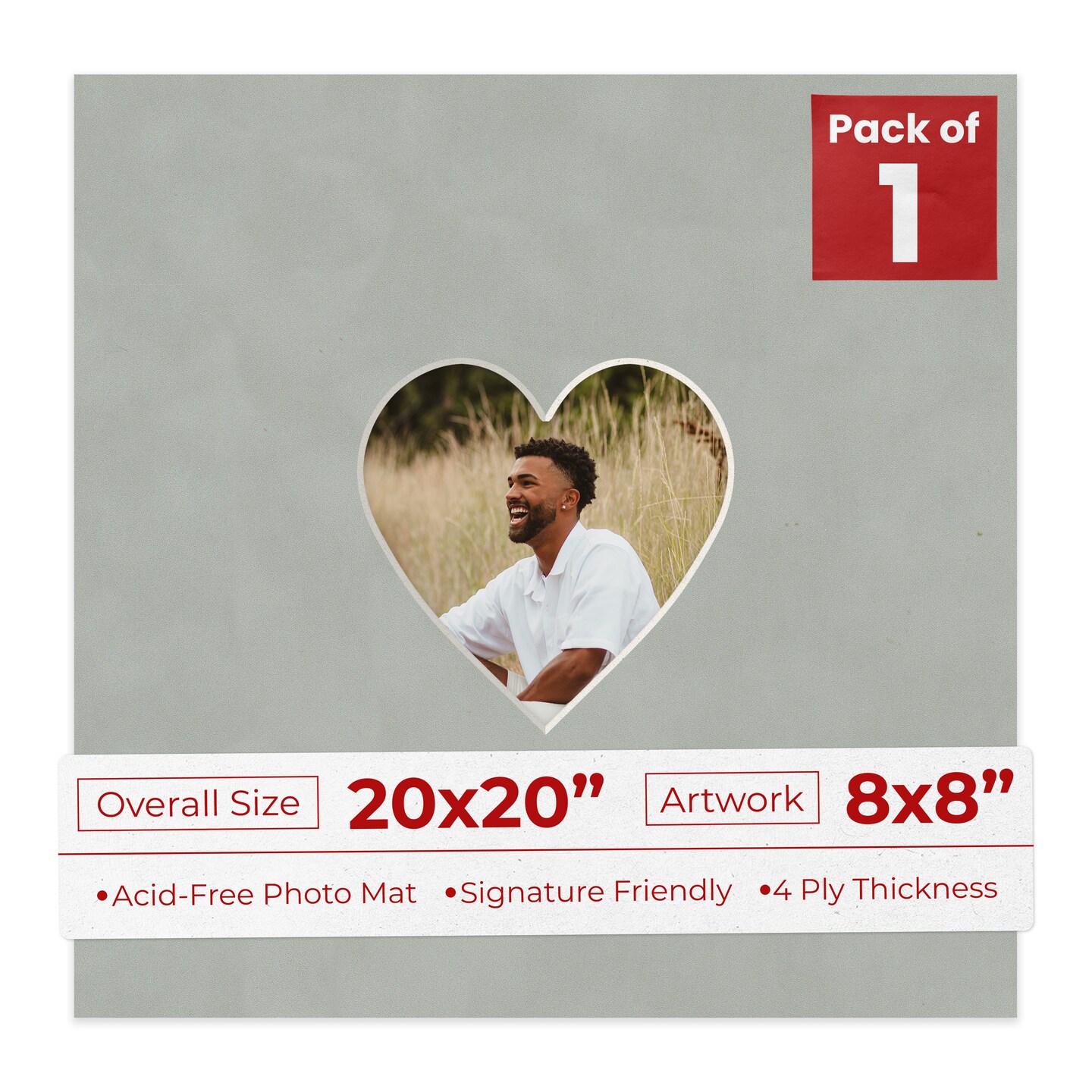 Light Grey Suede Mat Board for 20x20 Frames - Heart Opening for 8x8 Photos