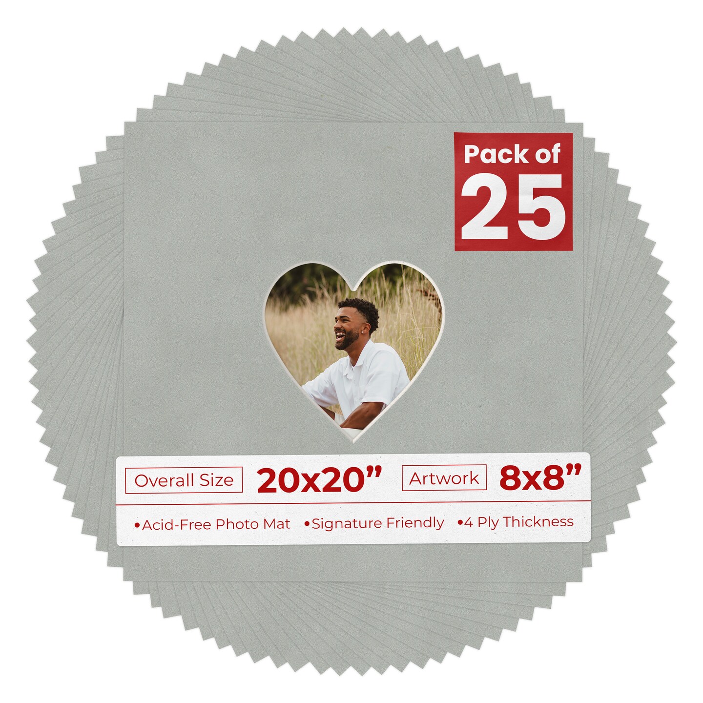 Light Grey Suede Mat Board for 20x20 Frames - Heart Opening for 8x8 Photos