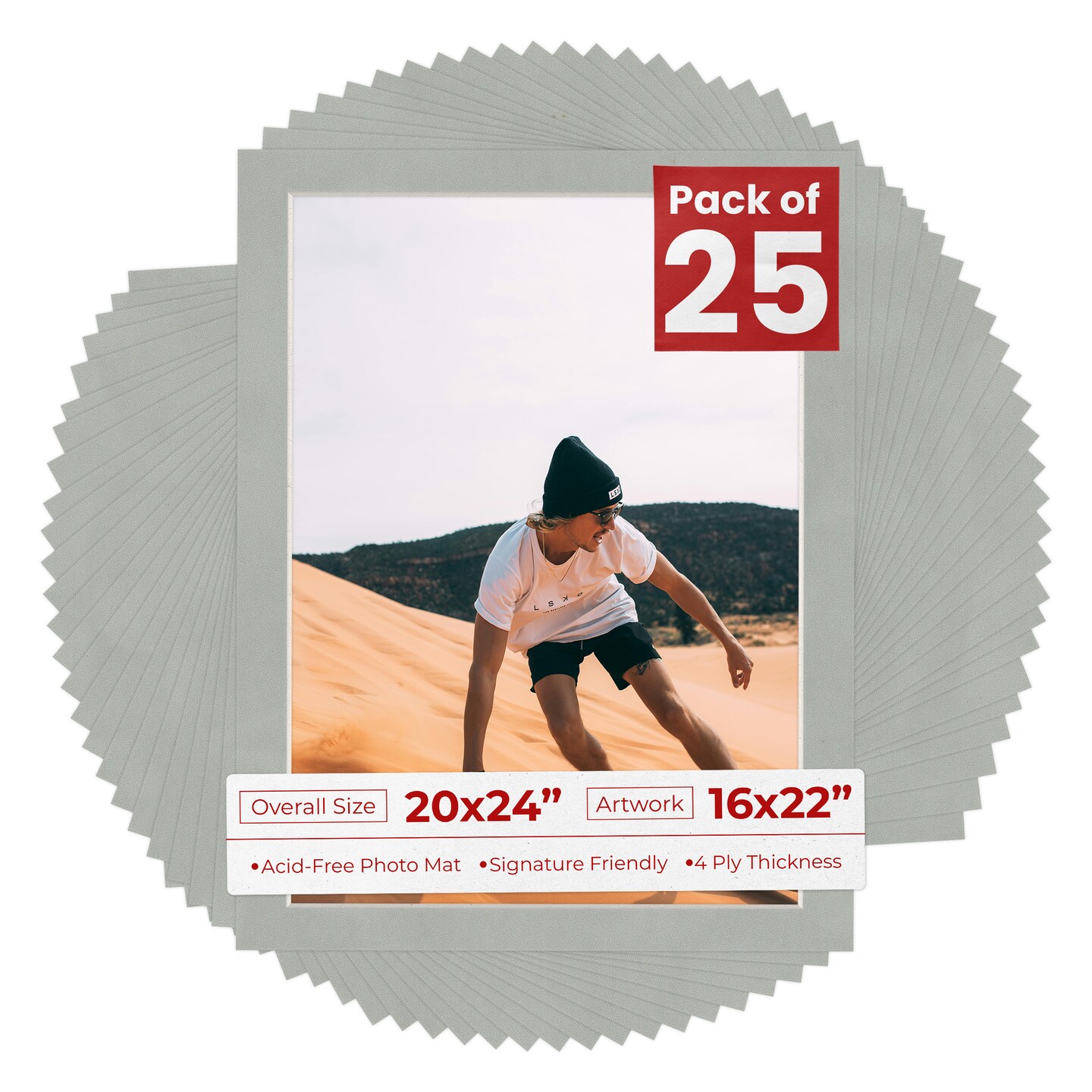 Light Grey Suede Mat Board for 20x24 Frames - Fits 16x22 Photos