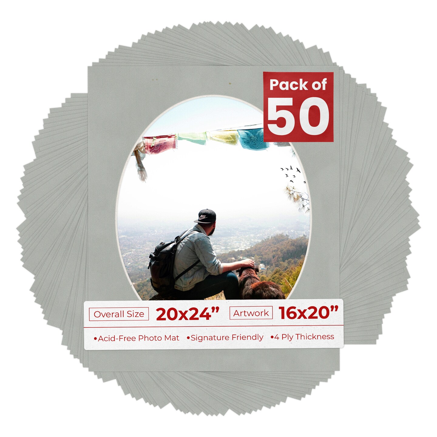 Light Grey Suede Mat Board for 20x24 Frames - Oval Opening for 16x20 Photos