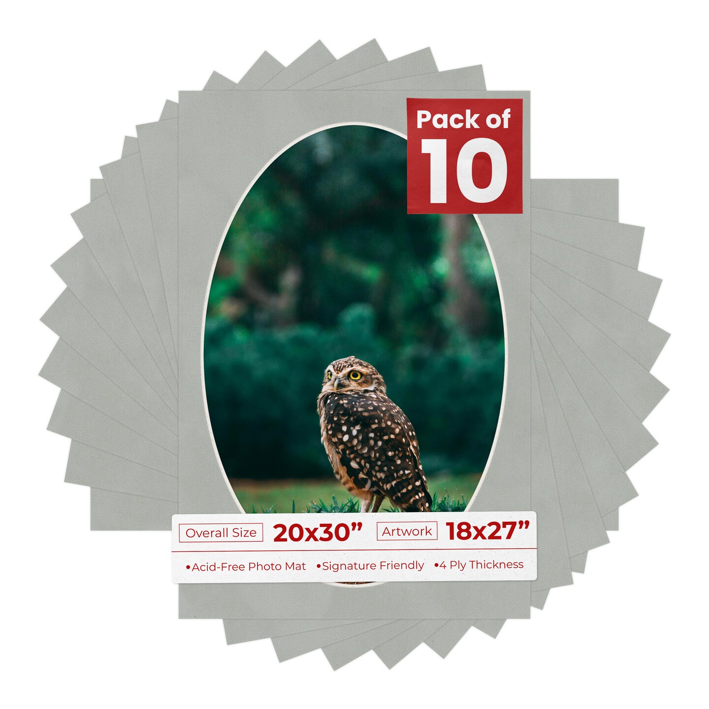 Light Grey Suede Mat Board for 20x30 Frames - Oval Opening for 18x27 Photos